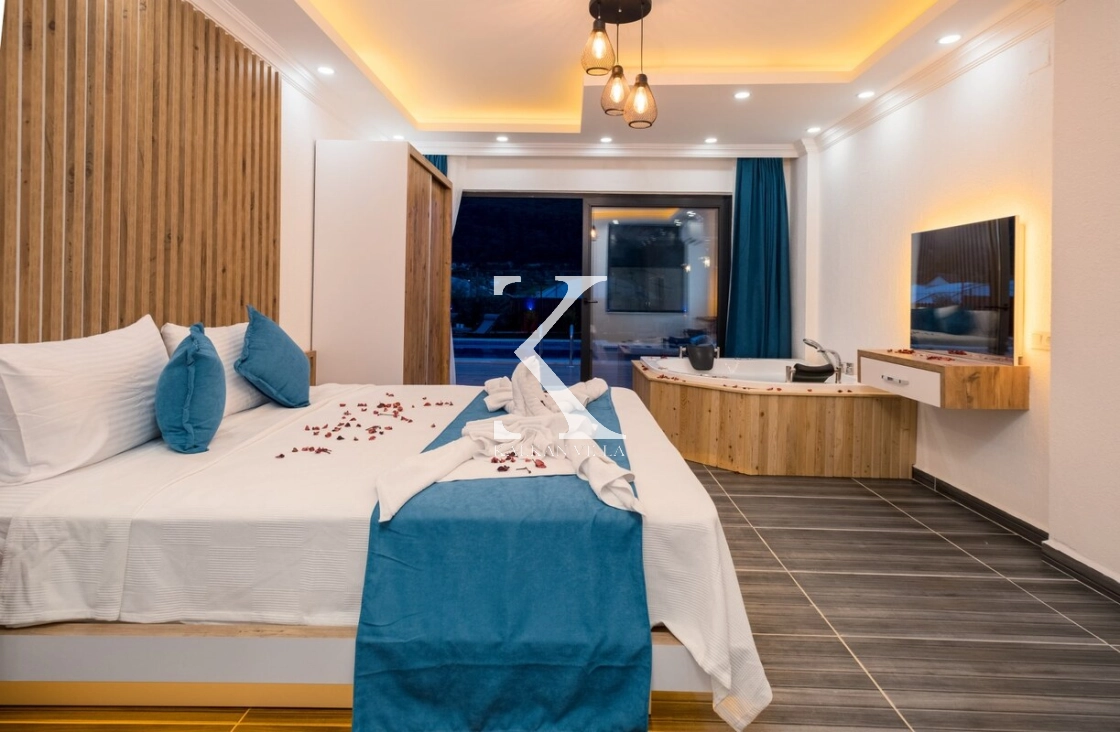 Çift kişilik yatak, elbise dolabı, komodin, makyaj masası ve klima bulunmaktadır. Ayrıca özel banyo ve jakuzi yer almaktadır.