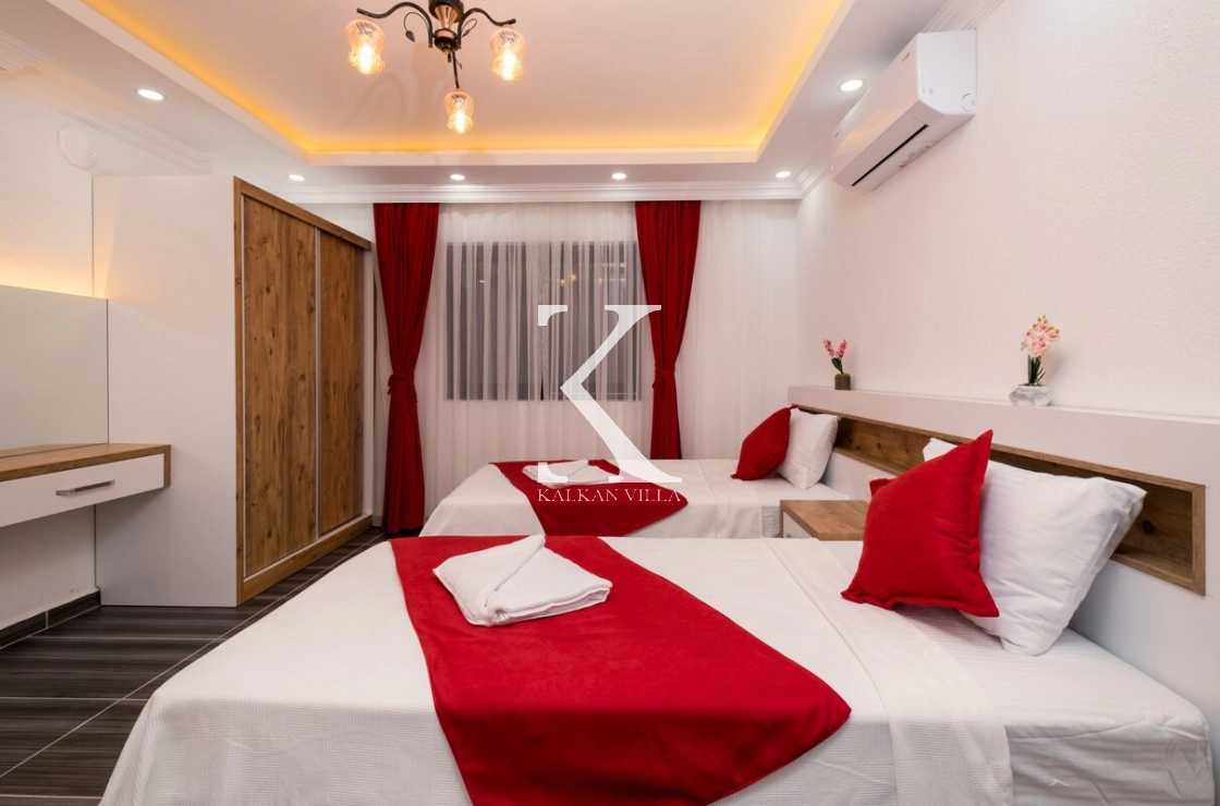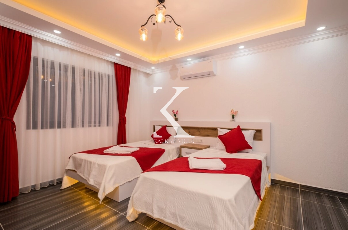 2 adet tek kişilik yatak, elbise dolabı, komodin, makyaj masası ve klima bulunmaktadır. Özel banyo ve doğa manzaralı balkon bulunmaktadır.