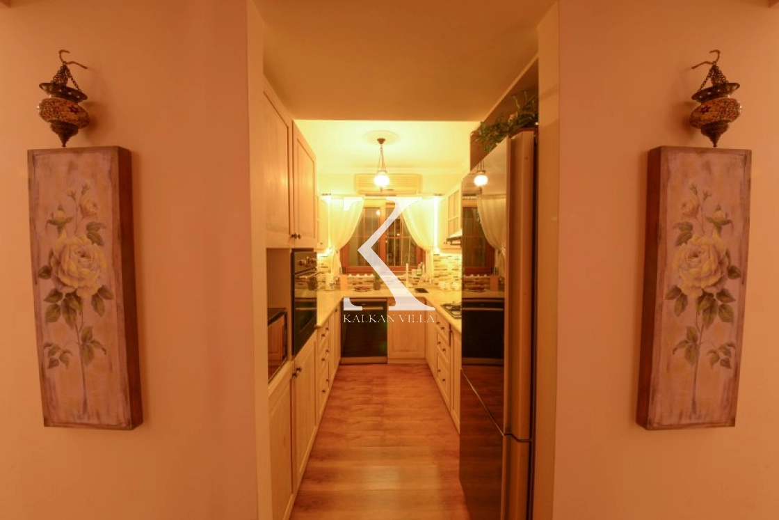 Tam donanımlı modern mutfakta; buzdolabı, bulaşık makinesi, ankastre ocak, fırın, mikrodalga, elektrikli su ısıtıcısı, ekmek kızartma makinesi, kahve makinesi, tava-tencere seti, yemek takımı ve çatal-bıçak takımları bulunmaktadır.