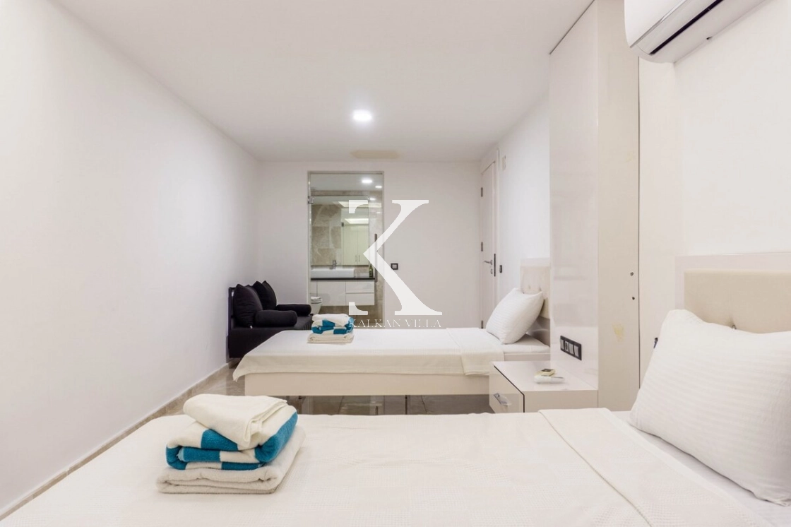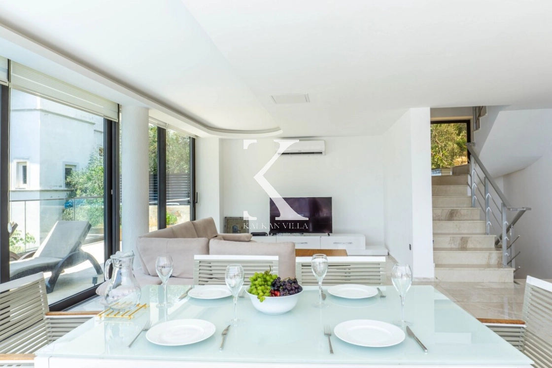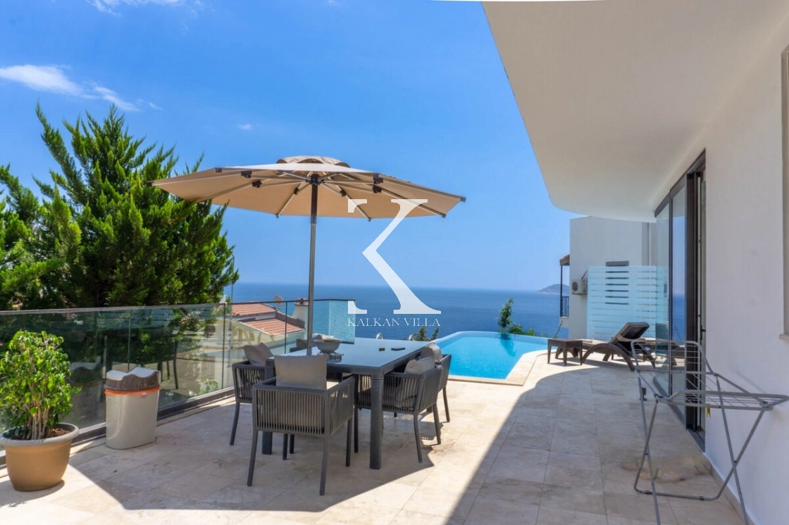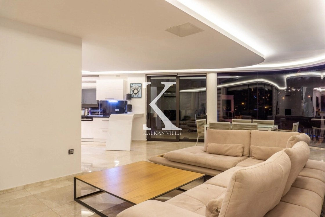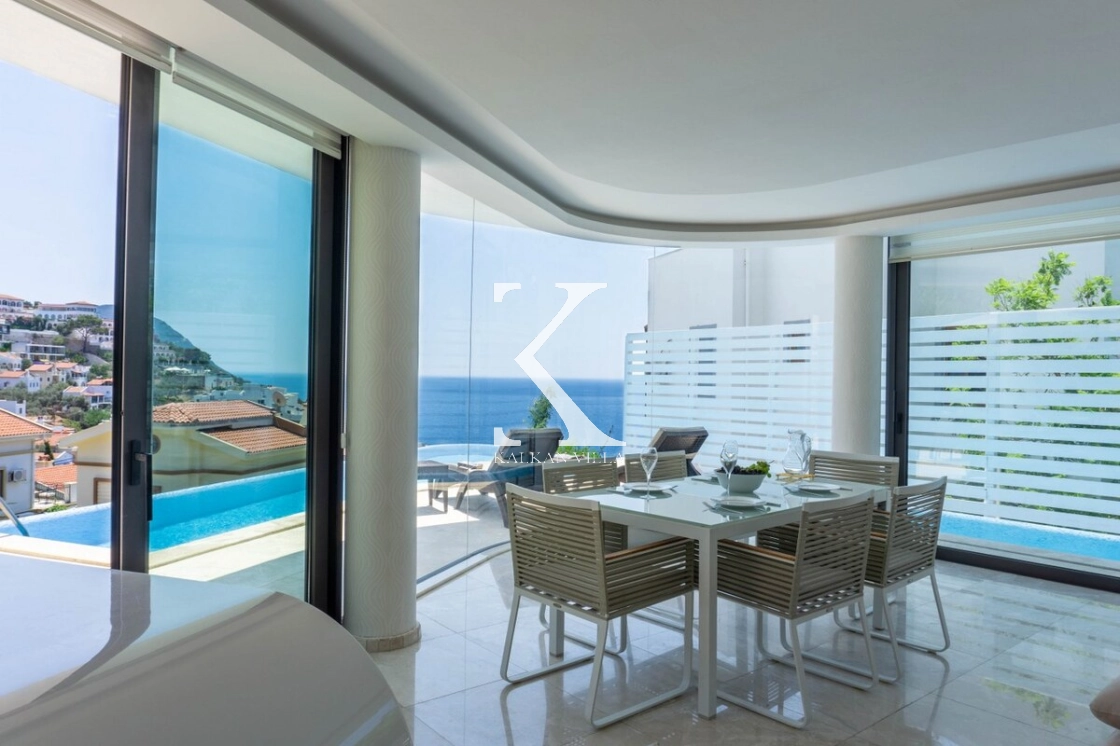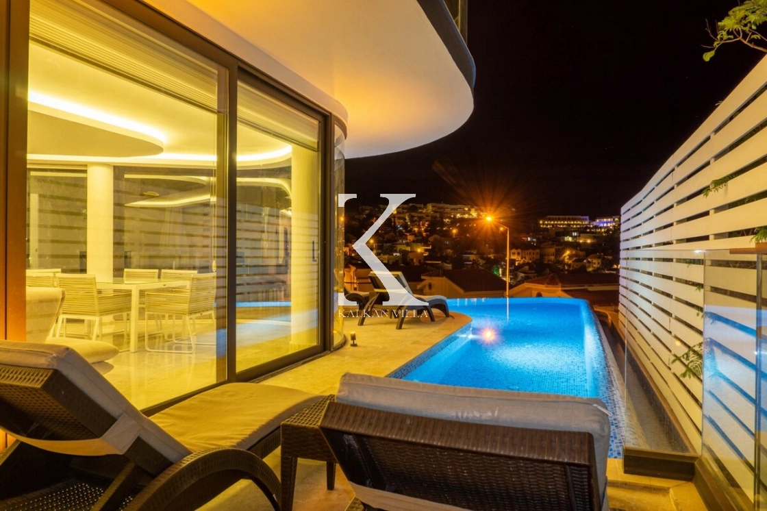 Kalkan merkeze, restoranlara ve plajlara yürüyüş mesafesinde bulunan villa; hem merkezi konumu hem de panoramik deniz manzarasıyla dikkat çekmektedir. Modern mimari, şık dekorasyon ve yüksek konfor standartları bir arada sunulmuştur.