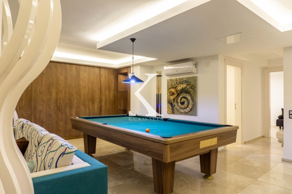 Villada bulunan özel jakuzi ve bilardo oyun odası, tatilinizi daha eğlenceli ve unutulmaz hale getirir. Deniz manzaralı, jakuzili ve bilardo odalı lüks villa arayan misafirler için Villa Bride Premium ideal bir tercihtir.