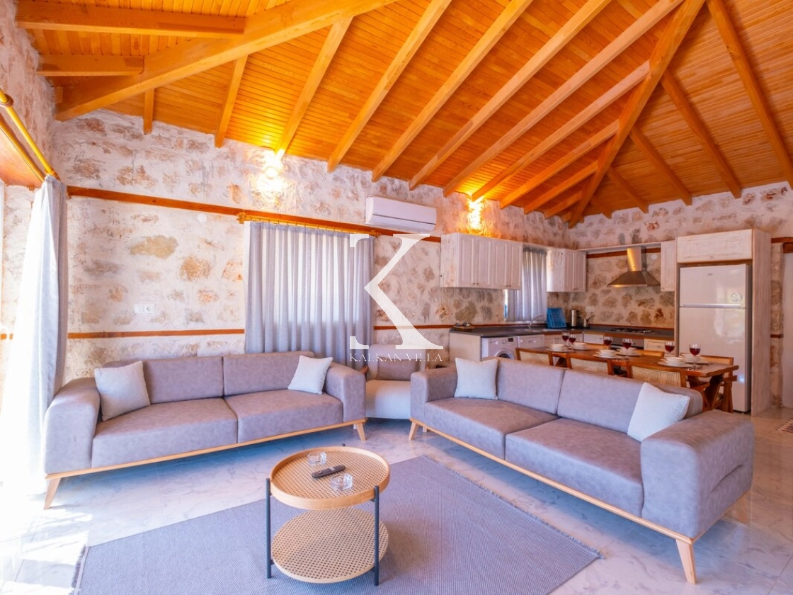 Doğanın kalbinde, Kaş Bayındır Köyü’nde yer alan Villa Carya Famm 2, taş ve ahşap detayların uyumuyla tasarlanmış, konforlu ve modern bir tatil villasıdır.