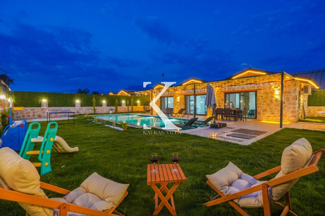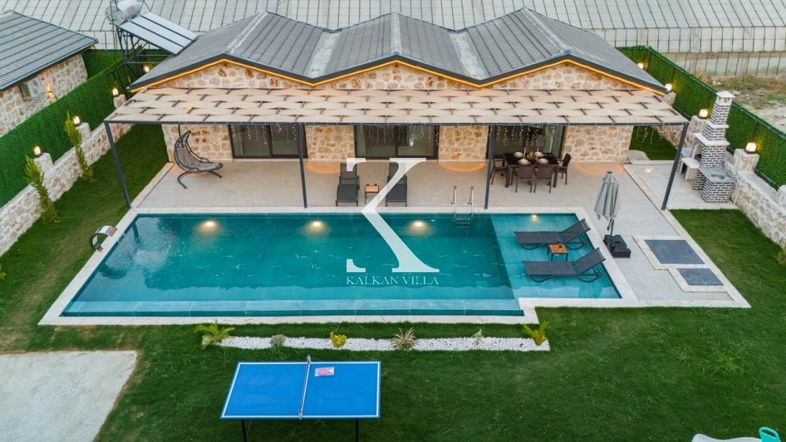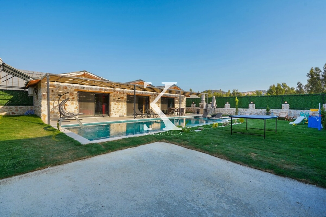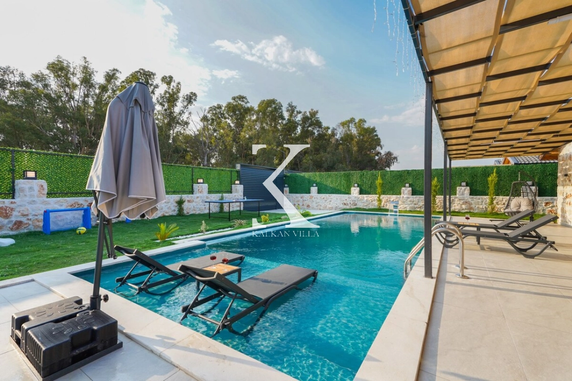 Villanın geniş bahçesinde salıncak, masa tenisi, mini oyun alanı, barbekü alanı, yemek masası ve şezlonglar yer almaktadır.