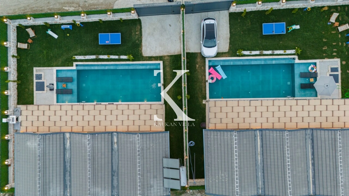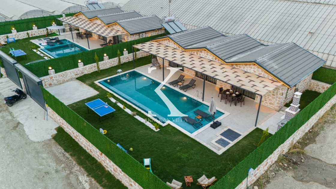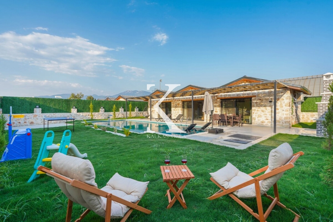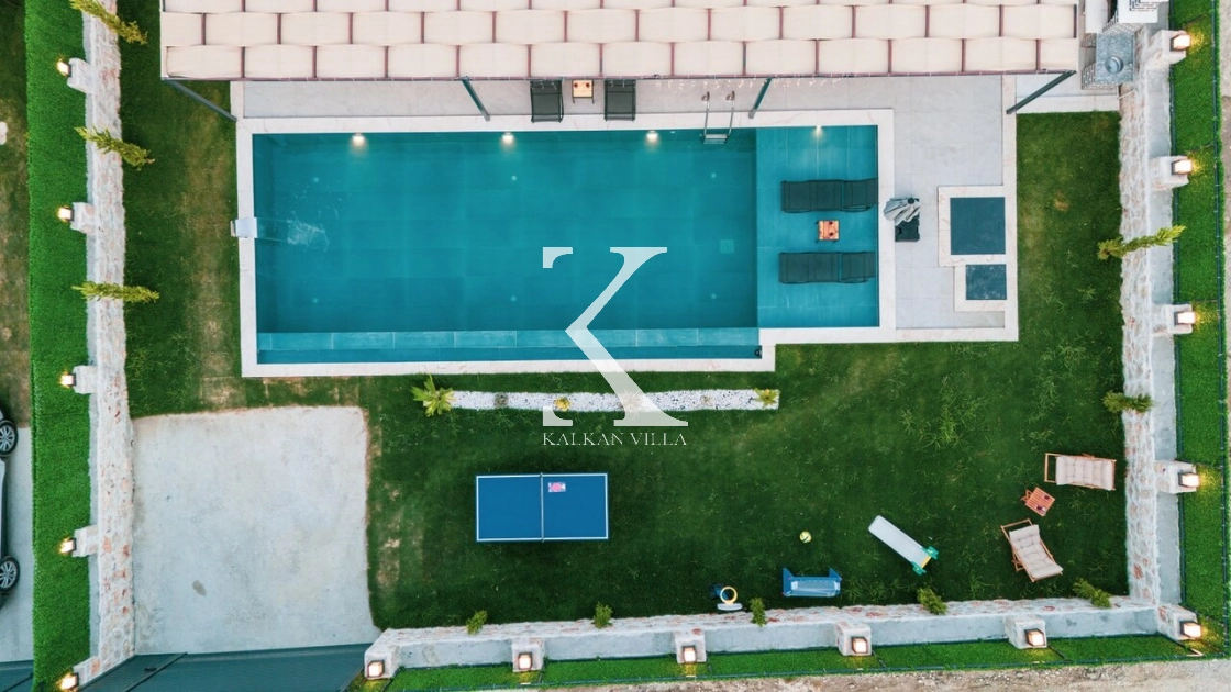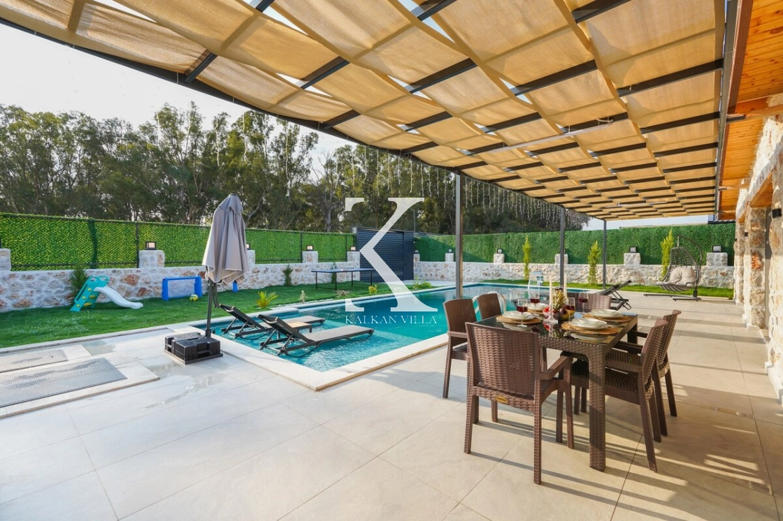Villanın geniş bahçesinde salıncak, masa tenisi, mini oyun alanı, barbekü alanı, yemek masası ve şezlonglar yer almaktadır.