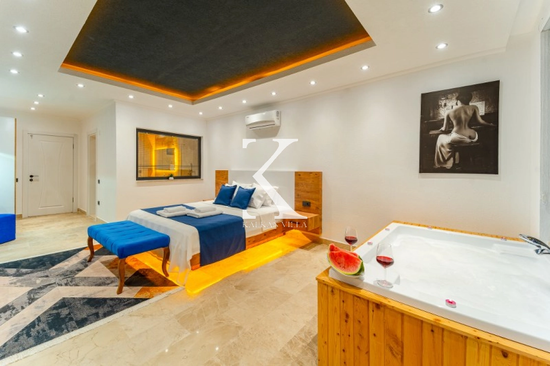 Villanın özenle dekore edilmiş ana yatak odasında özel jakuzi yer almakta olup, doğa manzarasına karşı keyifli anlar yaşamanız için tasarlanmıştır.