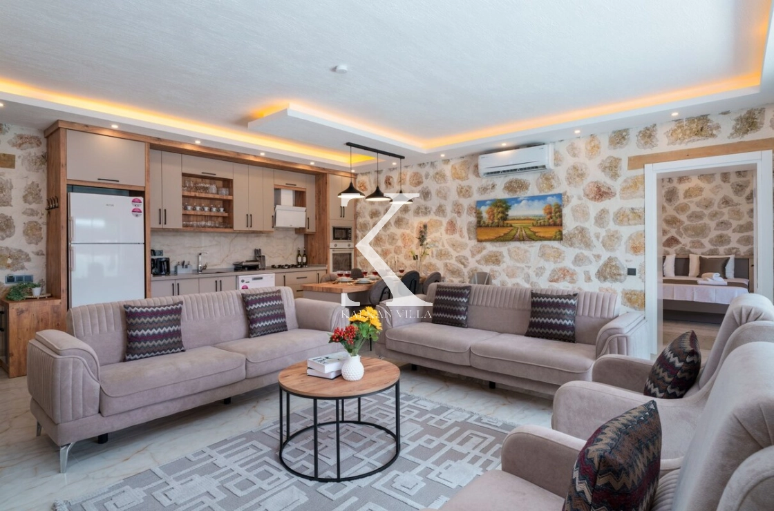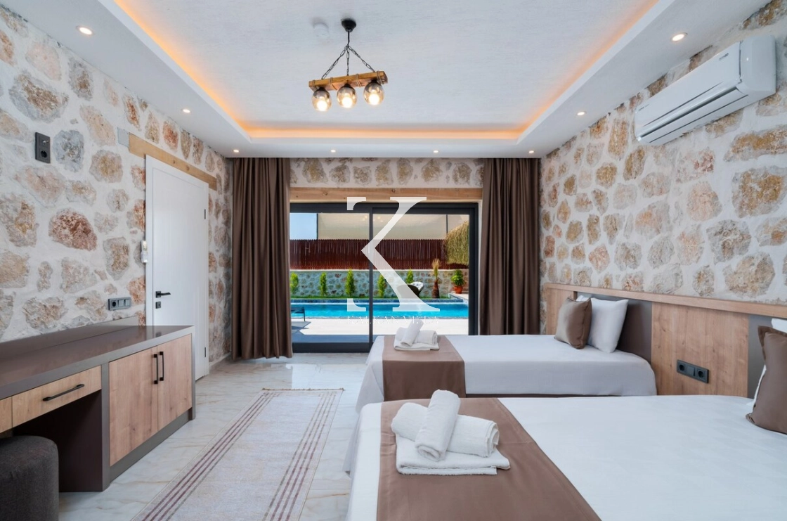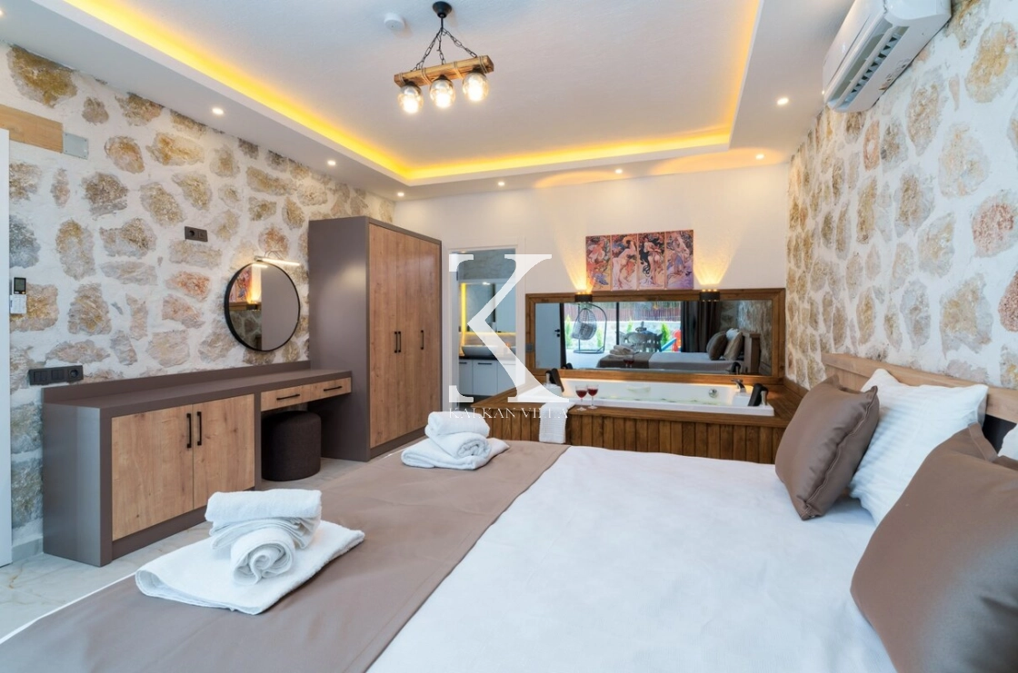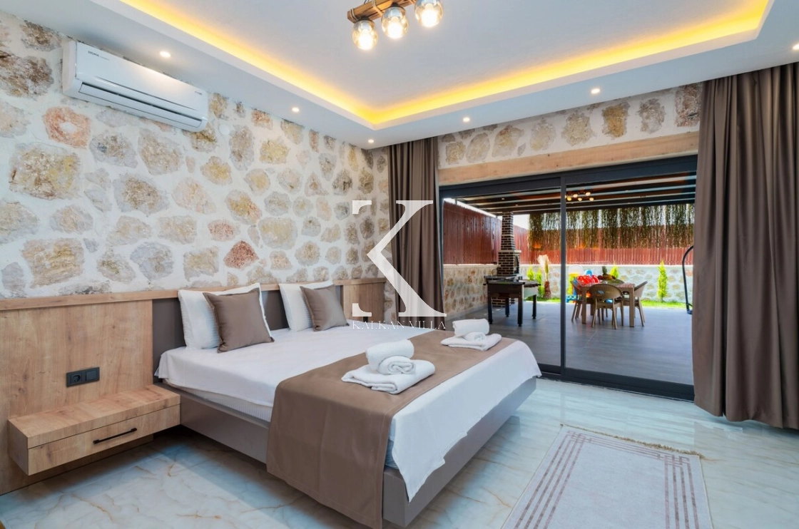 2 yatak odalı ve 4 kişilik konaklama kapasitesine sahip bu villa, özellikle balayı çiftleri ve çekirdek aileler için ideal bir konaklama imkânı sunmaktadır.
