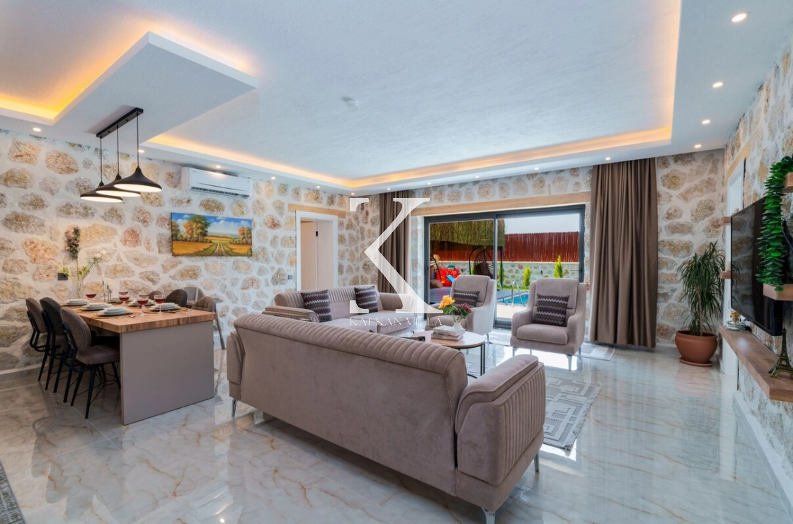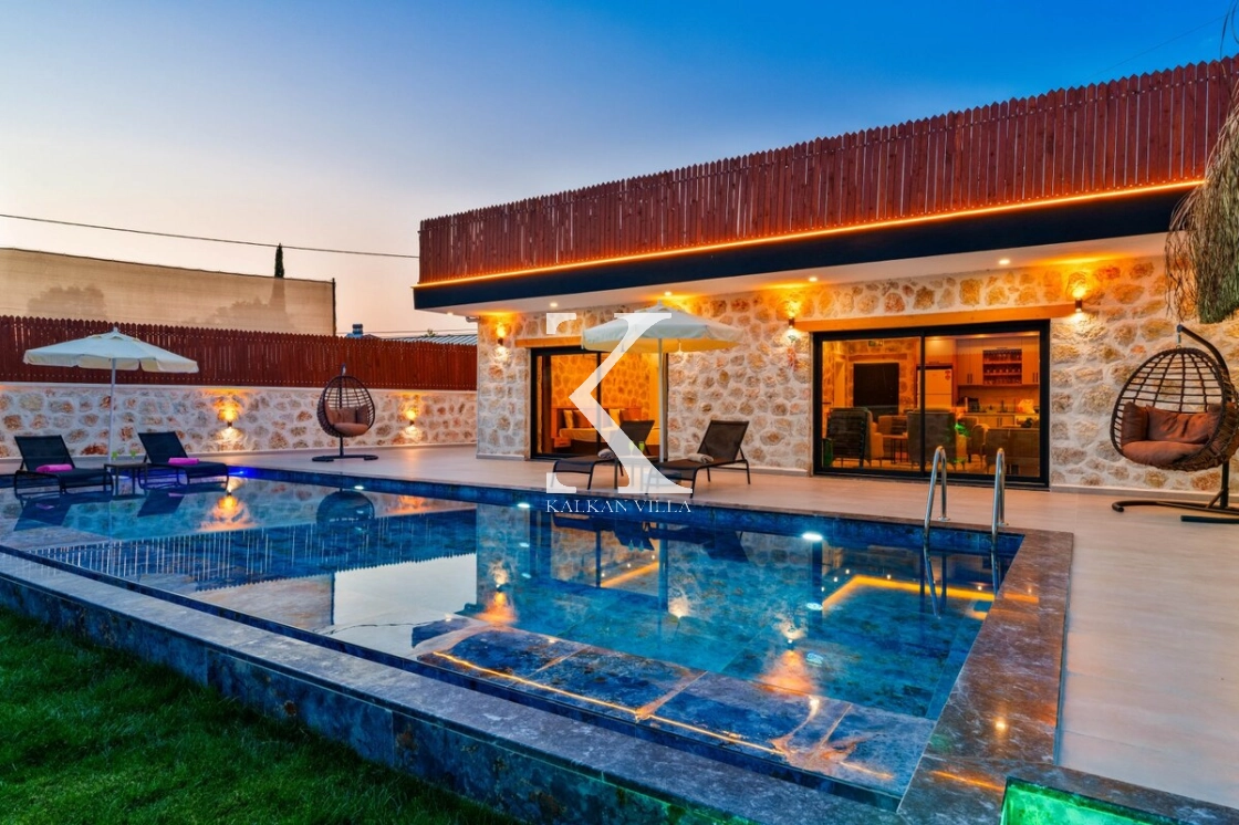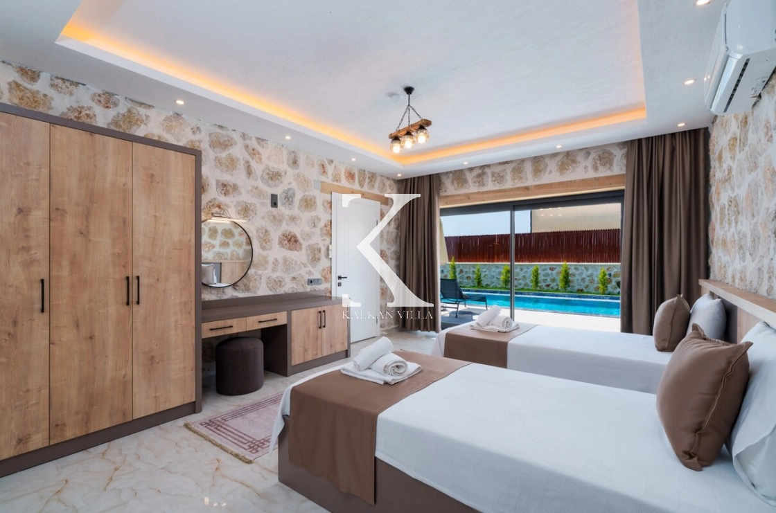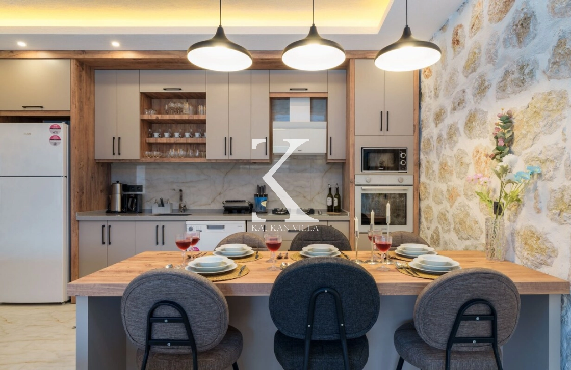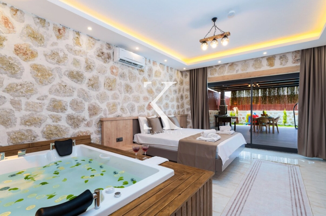 2 yatak odalı ve 4 kişilik konaklama kapasitesine sahip bu villa, özellikle balayı çiftleri ve çekirdek aileler için ideal bir konaklama imkânı sunmaktadır.
