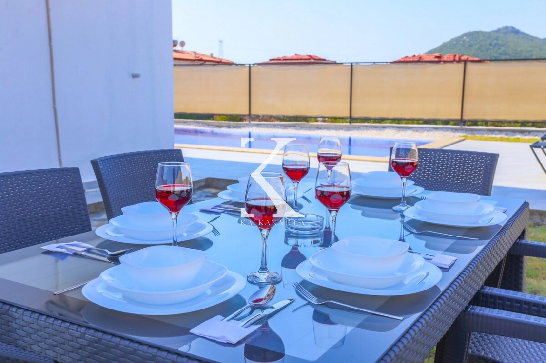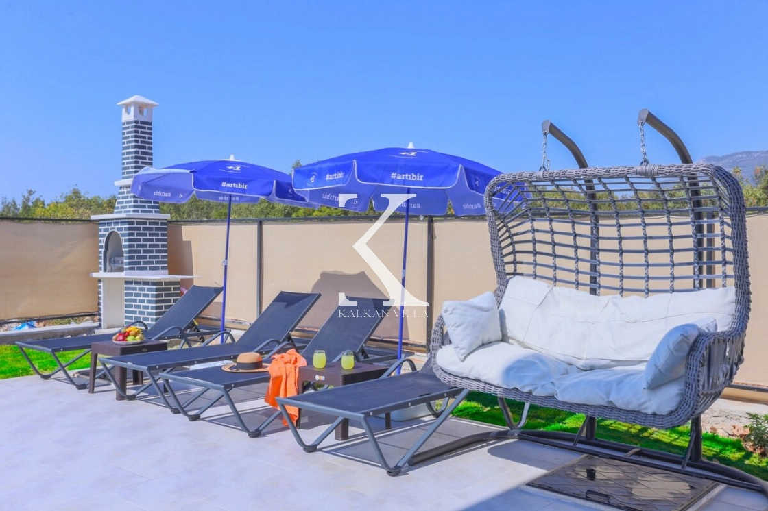 Villa Gökyüzü’nün en önemli avantajlarından biri ise korunaklı havuz alanıdır. Havuz terası ve mini bahçesi, özel tül perdeleme sistemi sayesinde dışarıdan görünmeyecek şekilde tasarlanmıştır. Bu özelliği sayesinde özellikle muhafazakâr aileler için oldukça uygun bir tatil ortamı sunar.