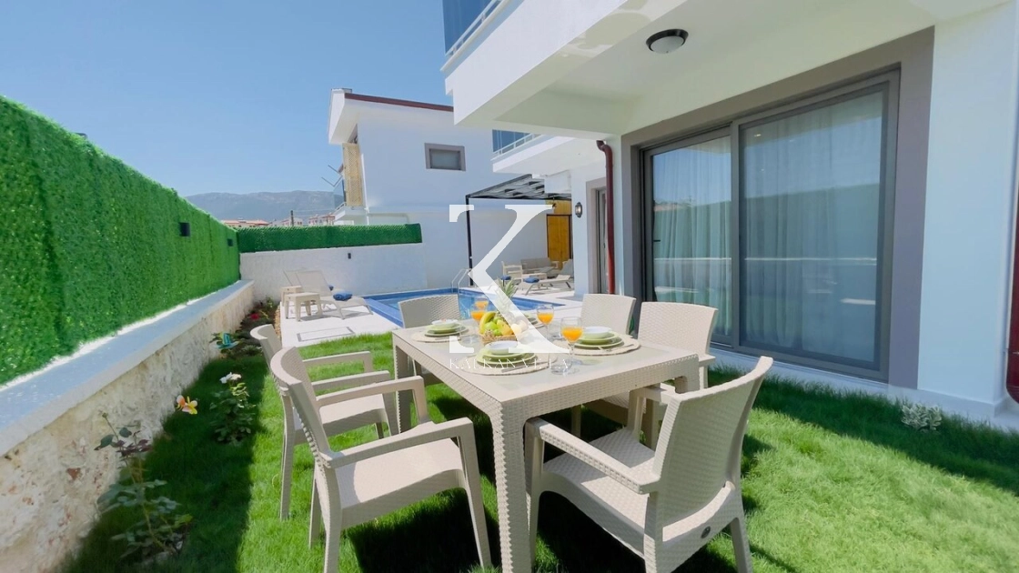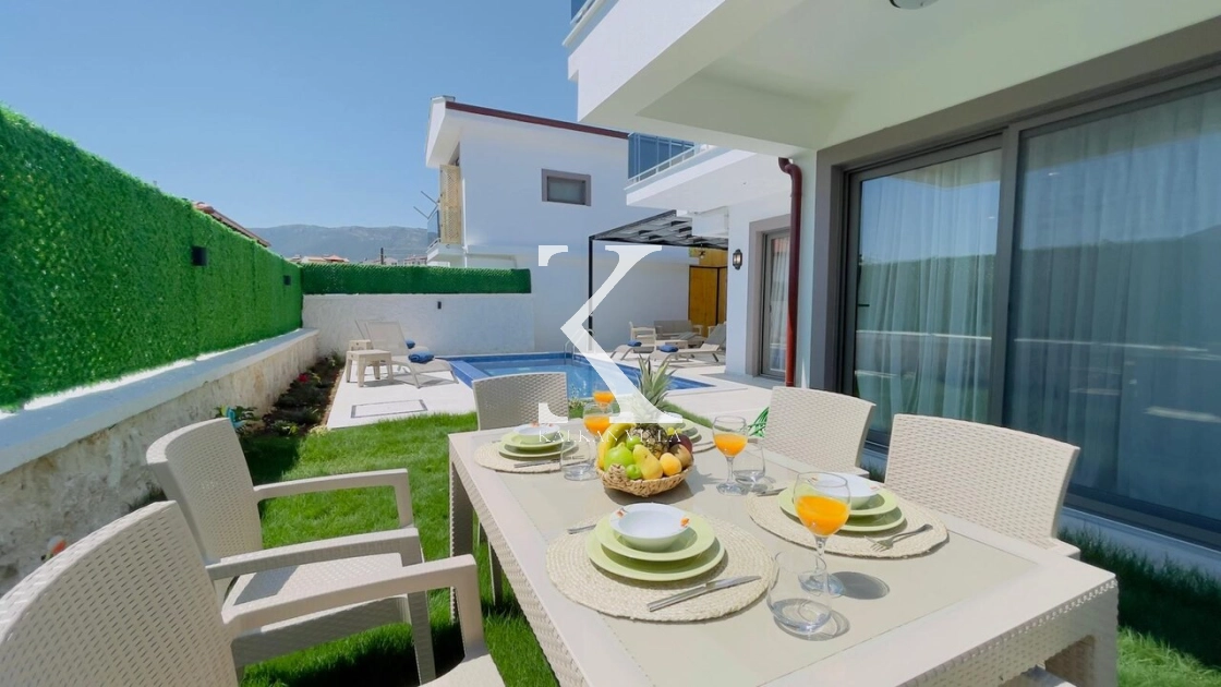 Geniş ve kullanışlı bahçesinde yer alan özel yüzme havuzu, şezlonglar, oturma alanı, barbekü ve yemek masası sayesinde gün boyu açık havanın tadını çıkarabilirsiniz. Doğa manzarası eşliğinde kahvaltılar yapabilir, akşamları ise keyifli sohbetlerle tatilinizi daha unutulmaz hale getirebilirsiniz.