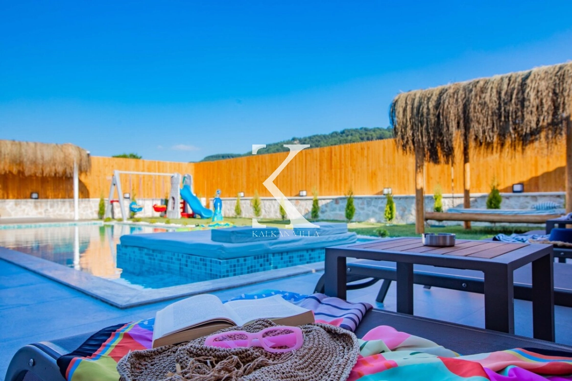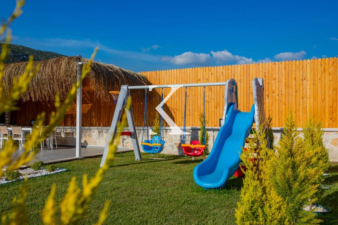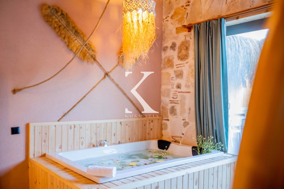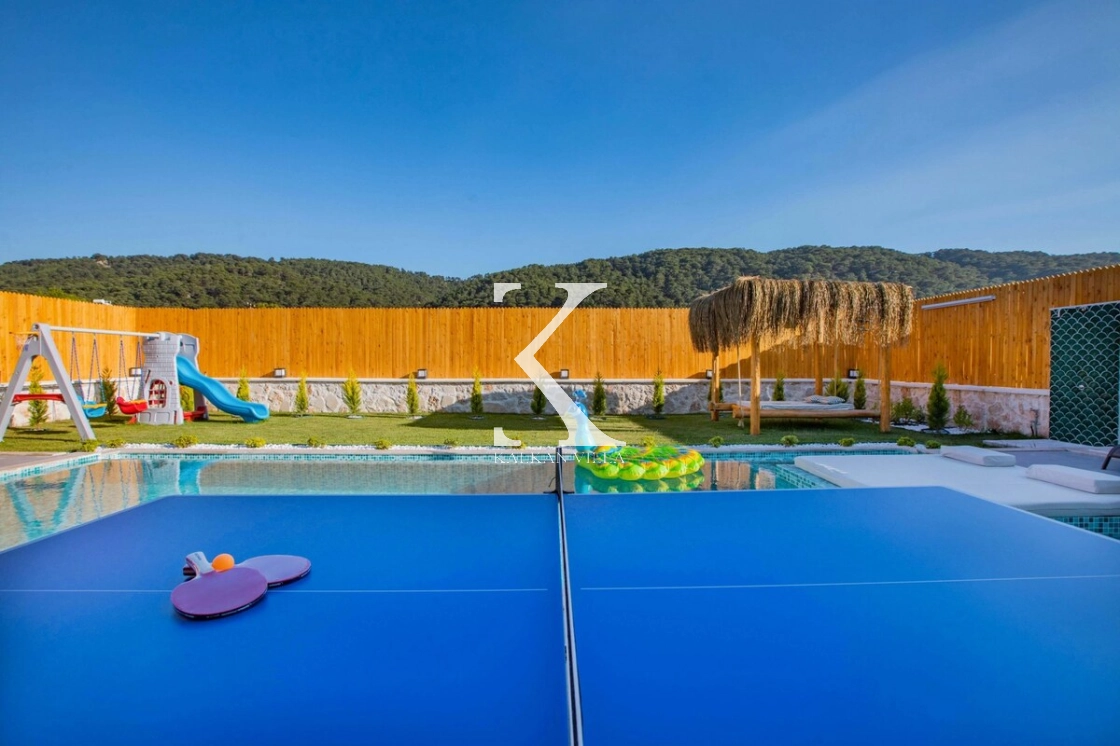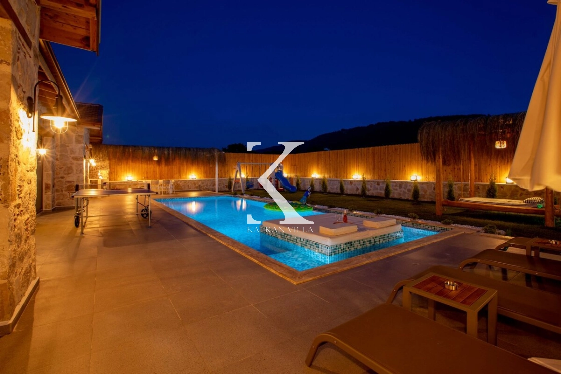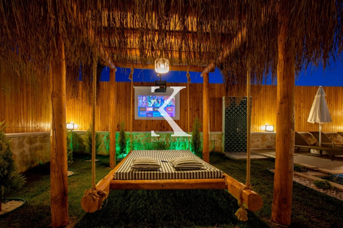 Sıcak ve davetkâr bir atmosfere sahip iç mekânı, korunaklı özel havuzu ve geniş bahçesi sayesinde gözlerden uzak, huzurlu bir tatil imkânı sağlar. Bahçede çocuklar için oyun alanı ve açık hava sineması, yetişkin misafirler için ise salıncak, sauna, hamam, masa tenisi ve langırt gibi birçok aktivite bulunmaktadır.