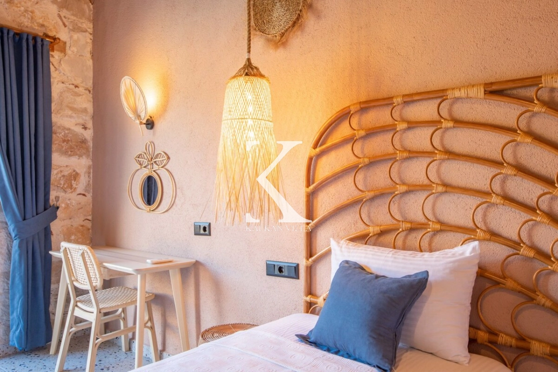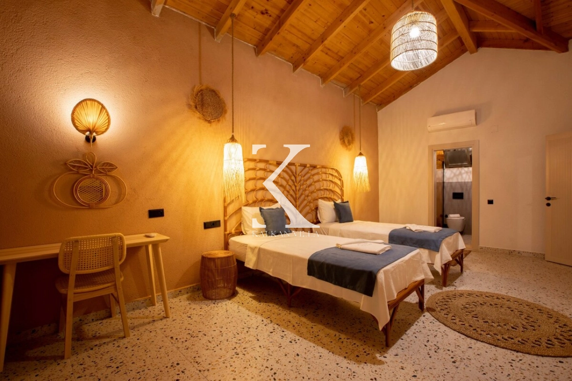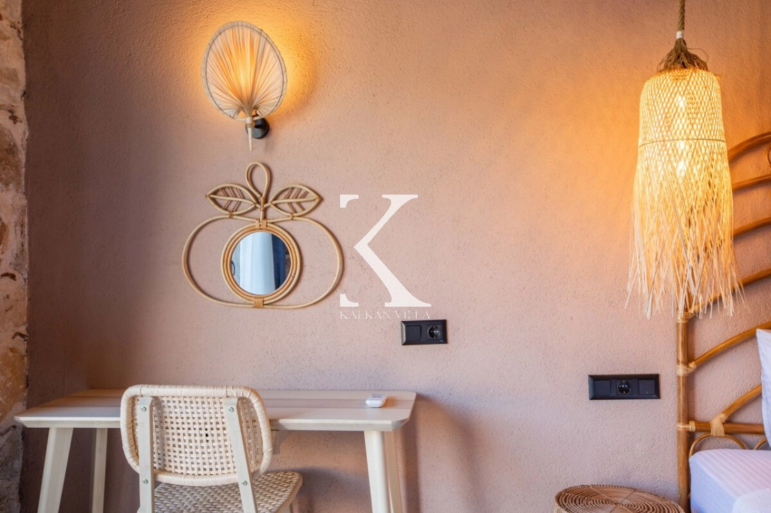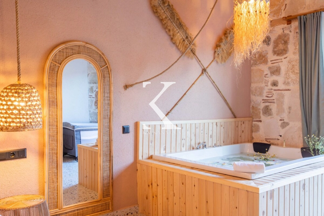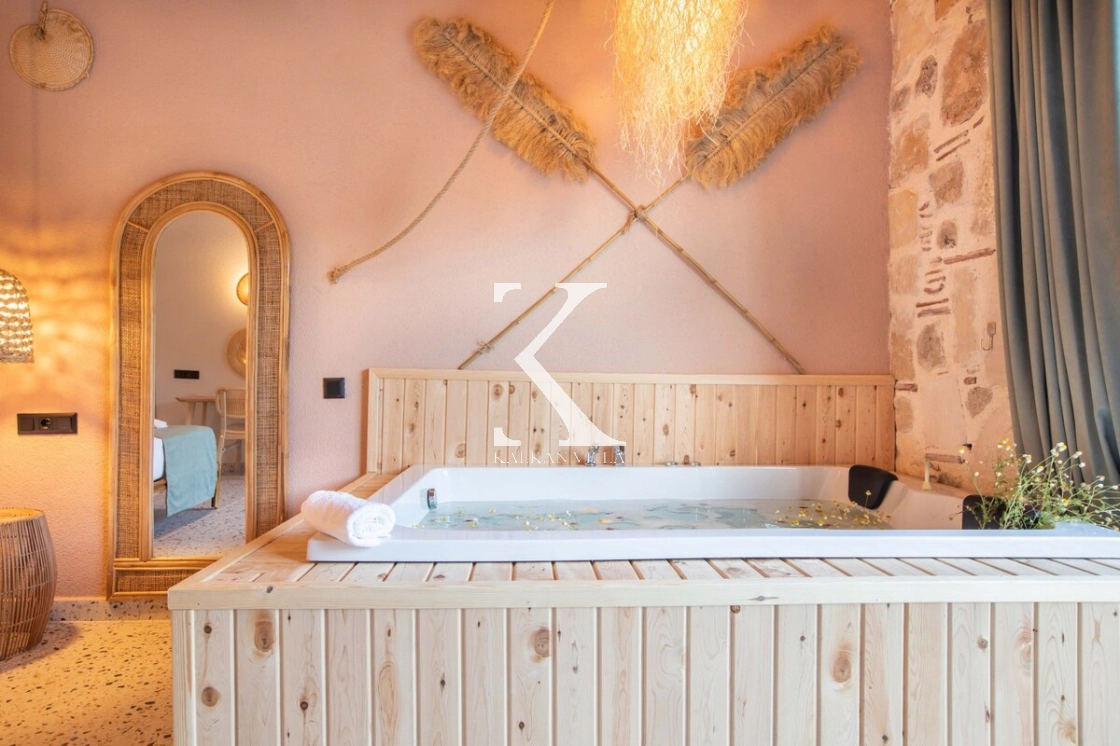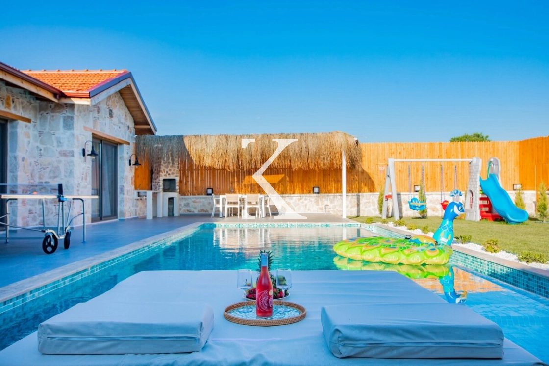 Sıcak ve davetkâr bir atmosfere sahip iç mekânı, korunaklı özel havuzu ve geniş bahçesi sayesinde gözlerden uzak, huzurlu bir tatil imkânı sağlar. Bahçede çocuklar için oyun alanı ve açık hava sineması, yetişkin misafirler için ise salıncak, sauna, hamam, masa tenisi ve langırt gibi birçok aktivite bulunmaktadır.
