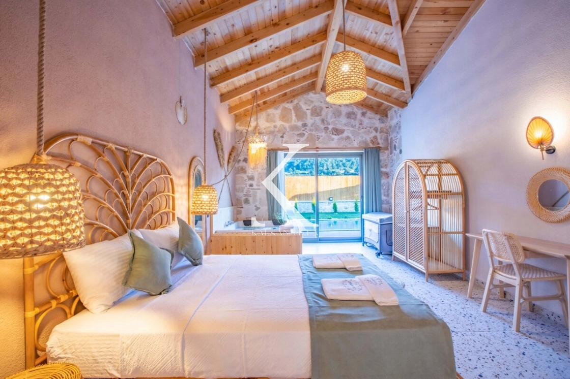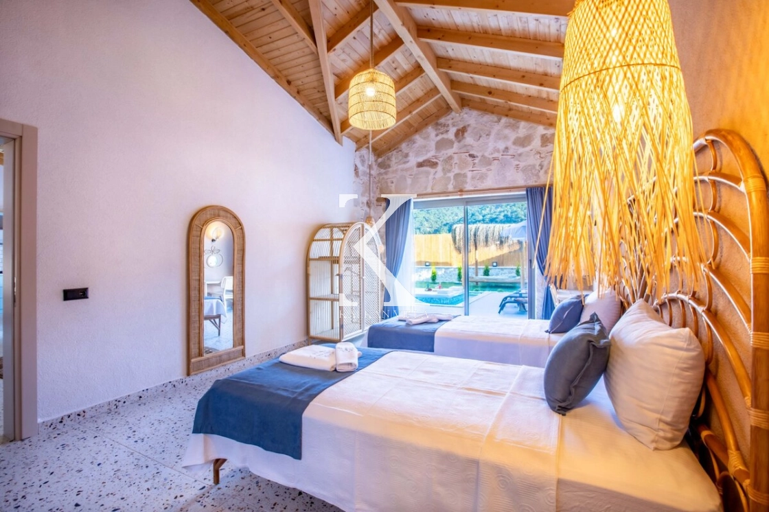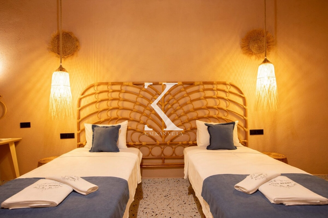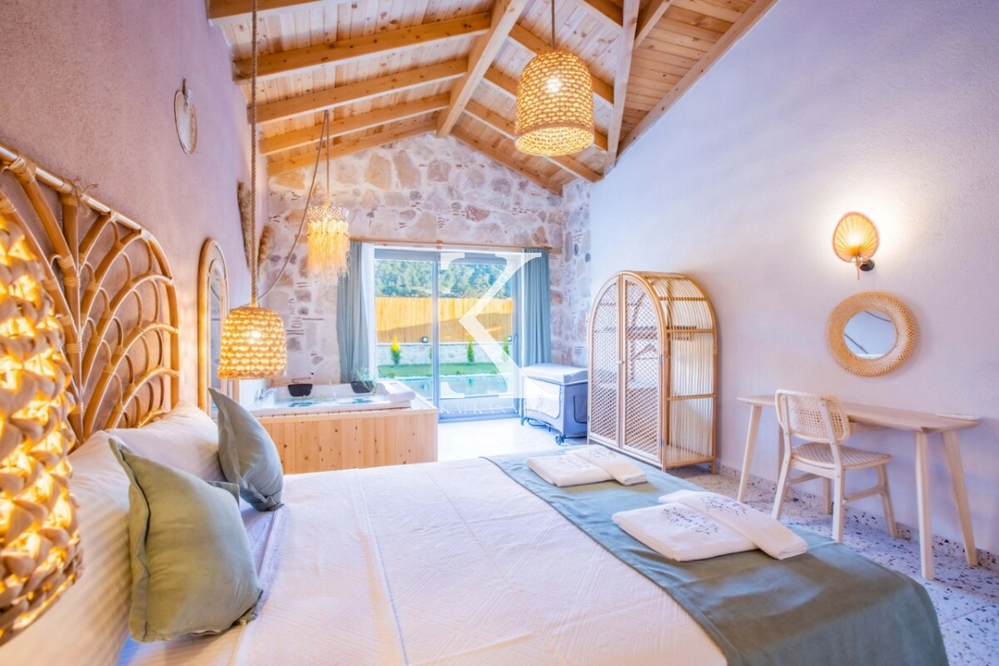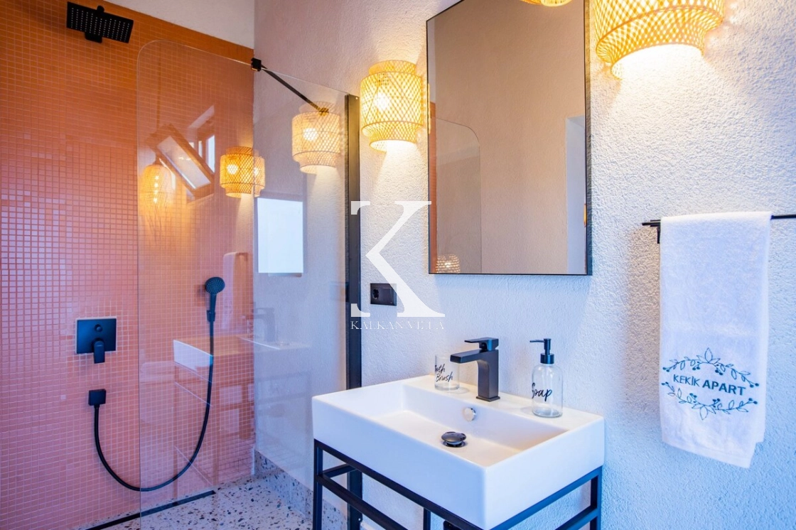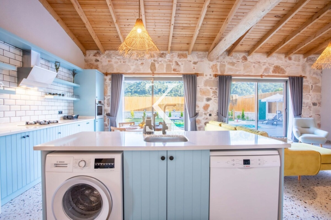 Villa Kekik Twins, Kalkan’ın doğayla iç içe bölgelerinden Sarıbelen’de konumlanan; taş ve ahşap mimarisi, bohem dekorasyonu ve zengin donanımıyla öne çıkan özel bir kiralık tatil villasıdır.