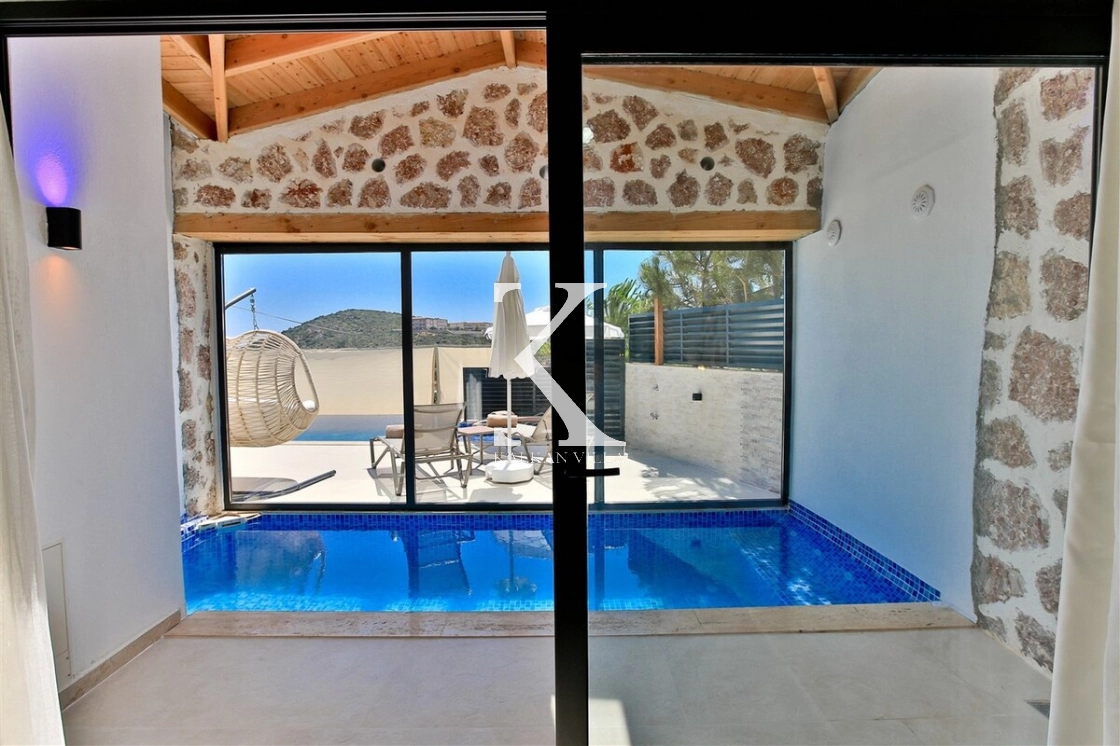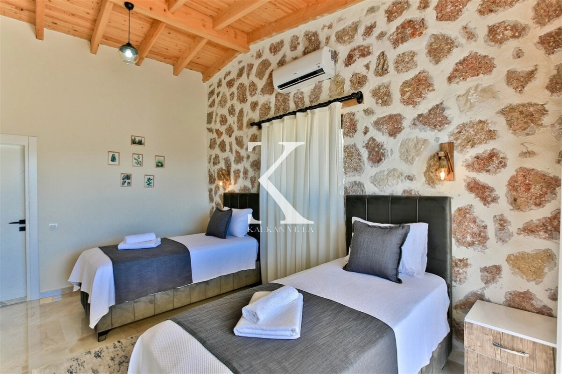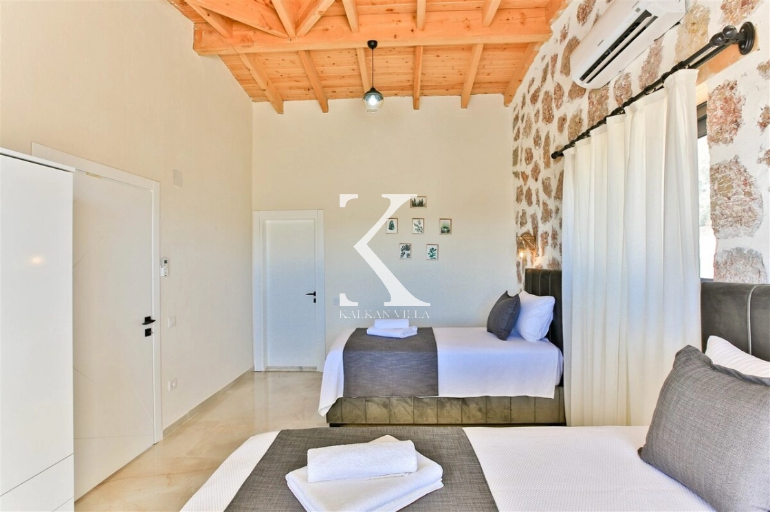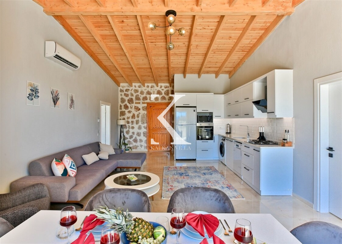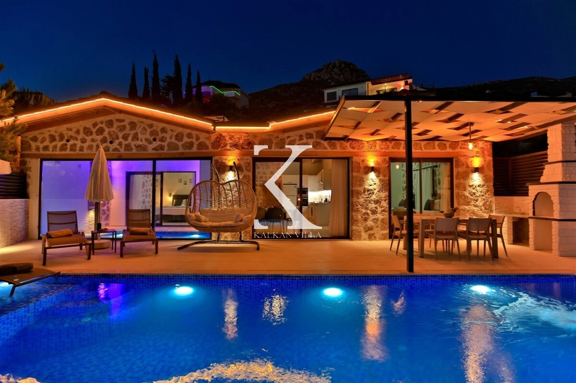 Modern konfor ile doğal mimariyi bir araya getiren Villa Kızılkaya, hem yaz hem de kış aylarında konforlu bir tatil sunan donanımıyla öne çıkar.