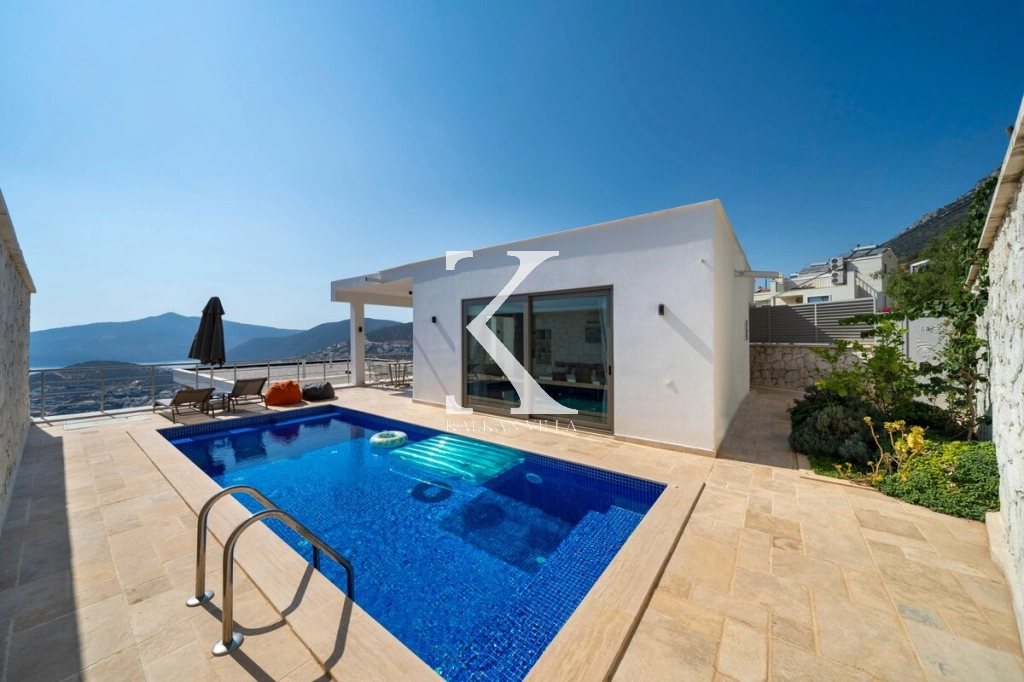 Kalkan’ın Kızıltaş bölgesinde yer alan Villa Mini Arden, çiftler için özel olarak tasarlanmış, deniz manzaralı şık ve modern bir villadır.