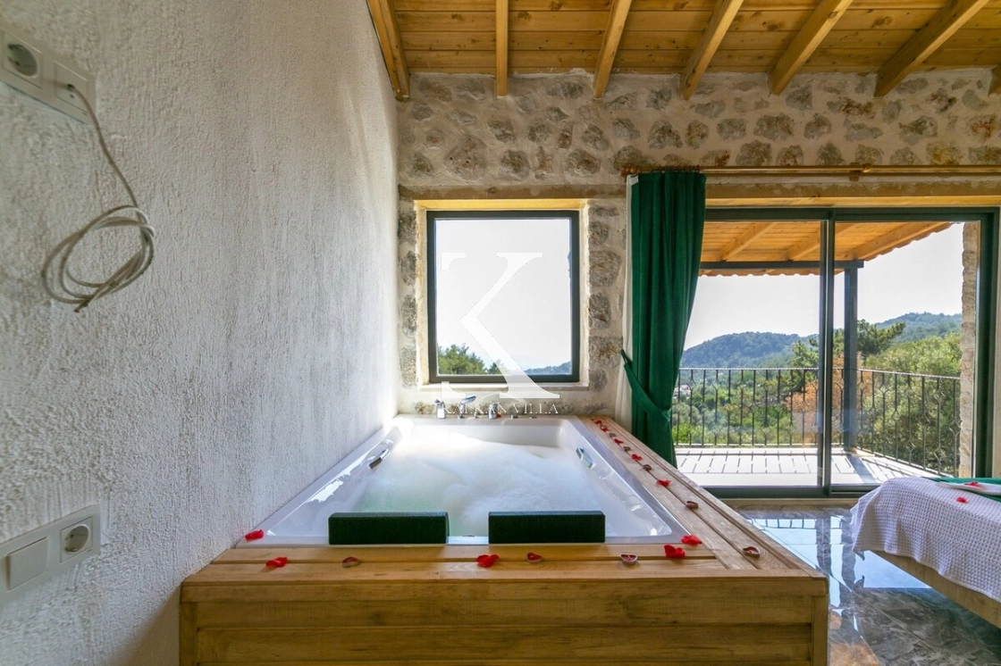 Doğanın huzur veren atmosferi içerisinde yer alan villanın özel yüzme havuzu ve korunaklı havuz terası, dış gözlerden uzak, sakin ve özgür bir tatil deneyimi sunar. Havuz alanında yer alan langırt masası, tatilinize eğlenceli anlar katarken; ebeveyn yatak odasında bulunan jakuzi, günün yorgunluğunu atmanız için özel olarak tasarlanmıştır.