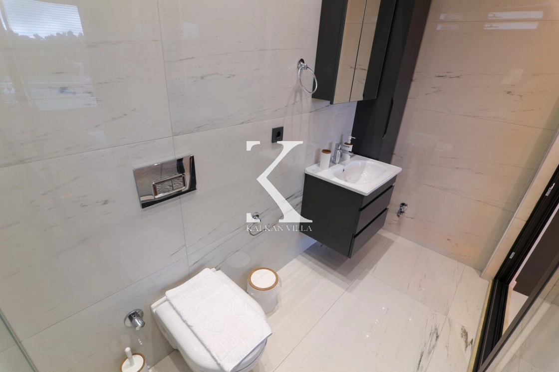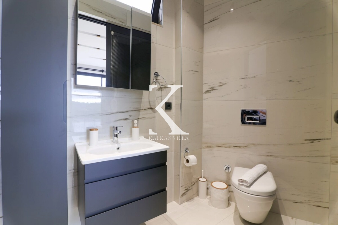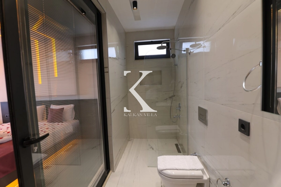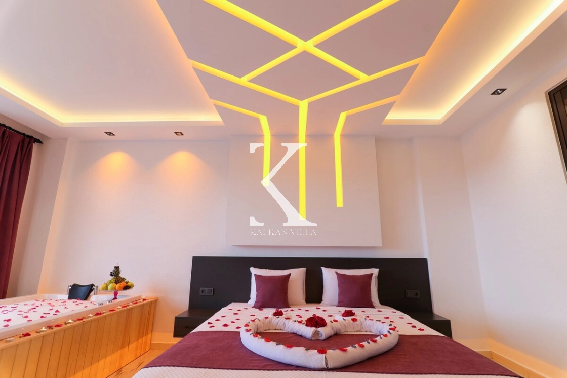 İç mekân modern ve konforlu eşyalarla dekore edilmiş olup, ana yatak odasında jakuzi yer almaktadır.