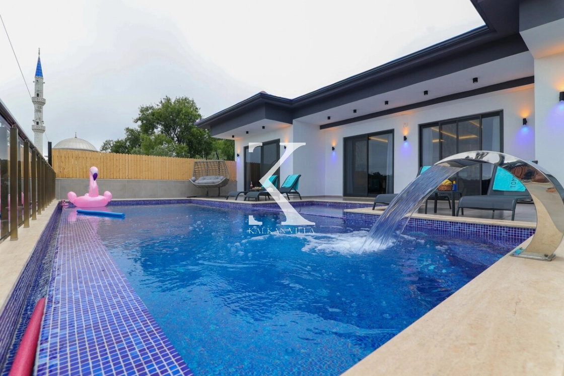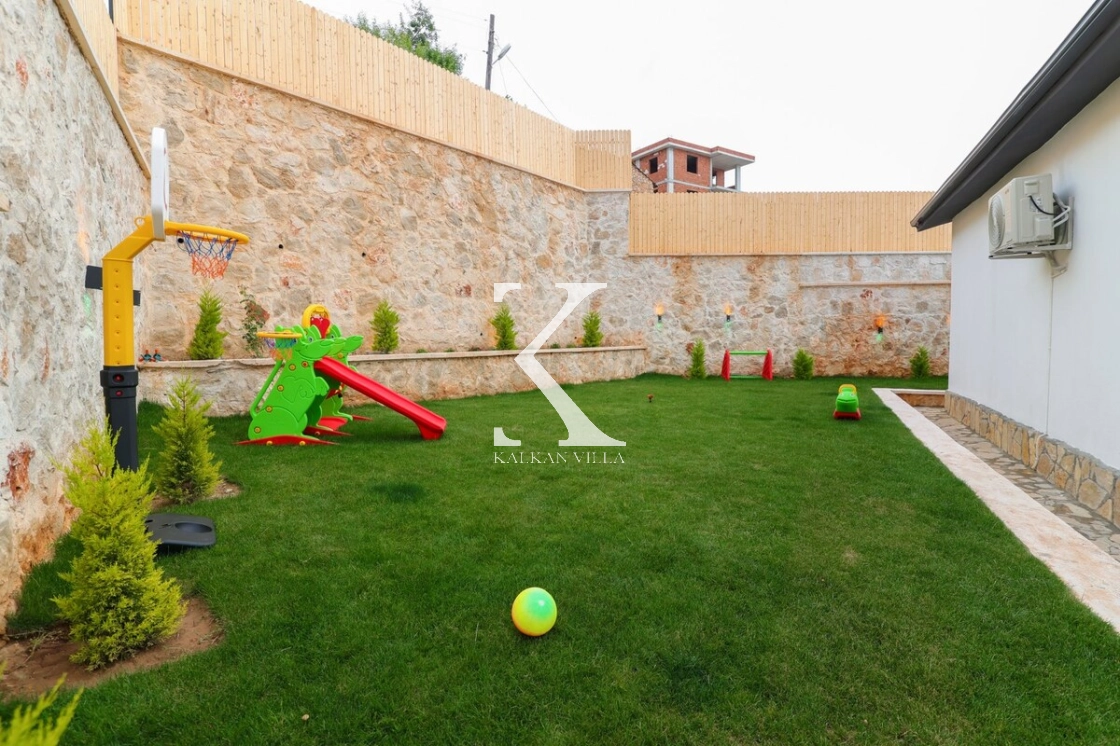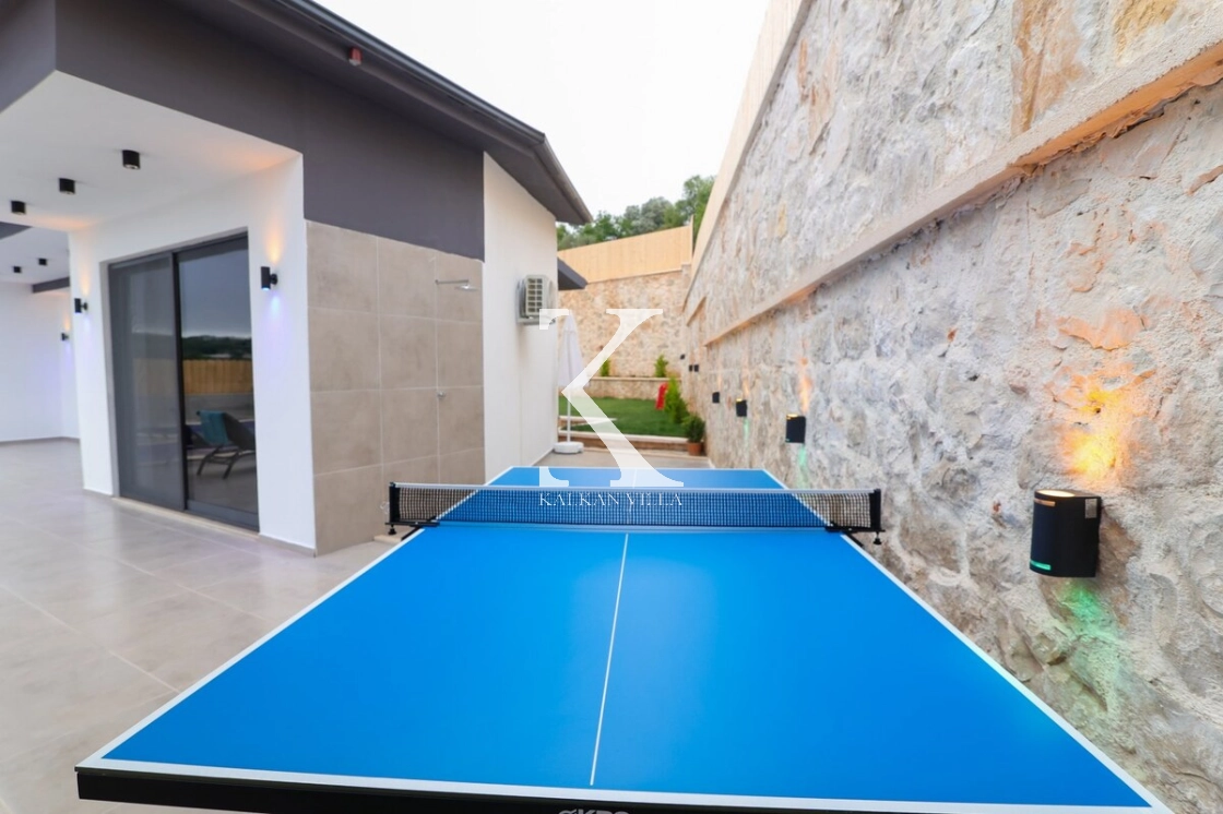 Villanın dış alanında korunaklı özel yüzme havuzu, mini oyun alanı, masa tenisi, salıncak, barbekü alanı ve oturma köşesi bulunmaktadır.