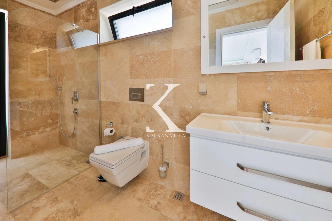 Doğa manzarasına sahip geniş bahçesinde özel yüzme havuzu, şezlonglar, yemek masası, bahçe oturma grubu ve barbekü alanı yer almaktadır. İç mekânda ise jakuzi, ısıtmalı kapalı havuz ve sinema odası gibi lüks detaylar bulunmakta olup, dört mevsim konforlu bir tatil imkânı sağlamaktadır.