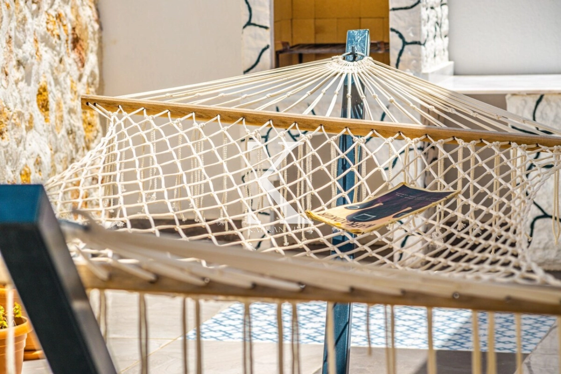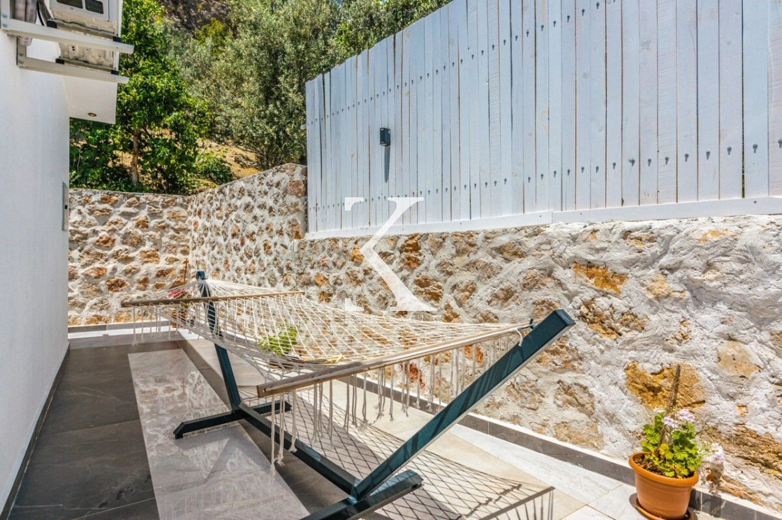 Sessizliğin, temiz havanın ve doğanın huzur verici atmosferinin tadını çıkarabileceğiniz geniş bahçesinde özel yüzme havuzu, şezlonglar, yemek masası, hamak ve barbekü alanı yer alır.