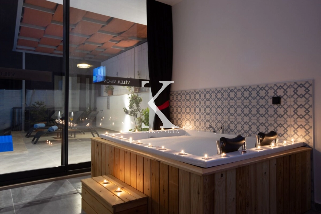 Modern detaylarla döşenmiş iç mekanlar, ferah yaşam alanları ve zarif dokularıyla Villa Neon, konforlu ve dingin bir tatilin adresidir.
