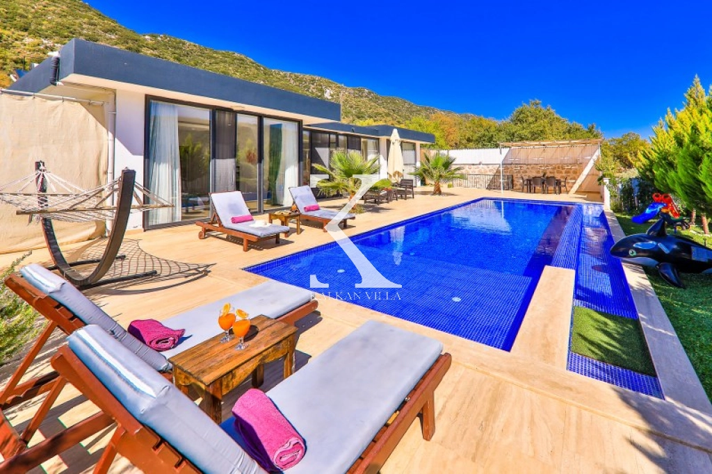 Villa Nil Sarıbelen, Kalkan’ın huzur dolu Sarıbelen bölgesinde, doğayla iç içe konumu ve korunaklı yapısıyla sakin bir tatil geçirmek isteyen misafirlere özel olarak tasarlanmıştır.