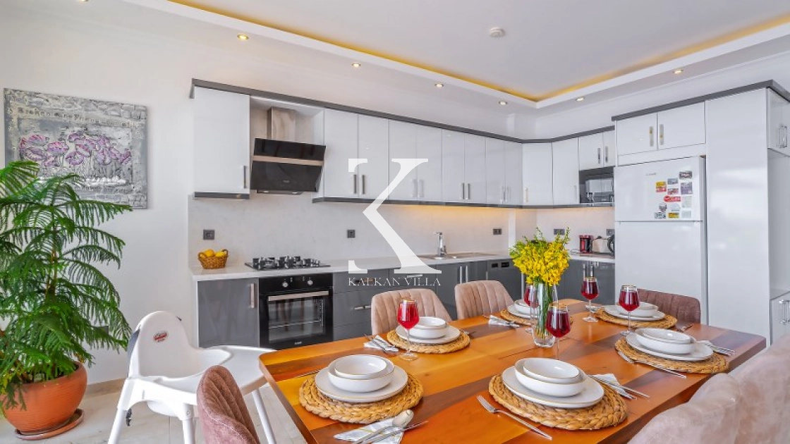 buzdolabı, bulaşık makinesi, kahve makinesi, tost makinesi, su ısıtıcısı, ocak, fırın, yemek masası, yemek takımı ve yemek pişirme ekipmanları bulunmaktadır.