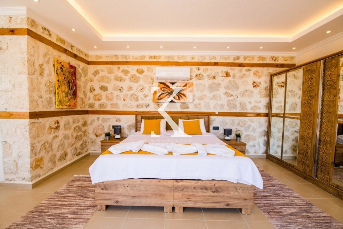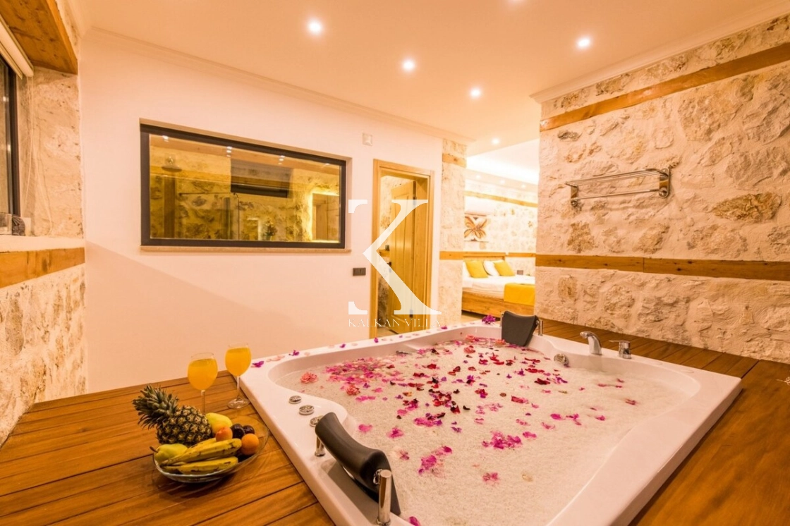 Kalkan’ın huzur dolu ve doğayla iç içe konumu ile öne çıkan Ulugöl bölgesinde yer alan Villa Şahin Ulugöl, sadece 2 kişilik konaklama kapasitesiyle özel anlar yaşamak isteyen çiftler için tasarlanmış romantik bir tatil villasıdır.
