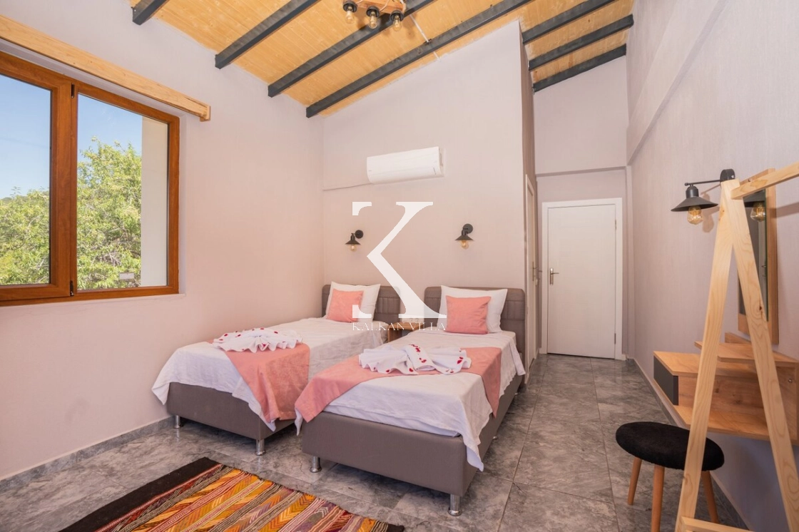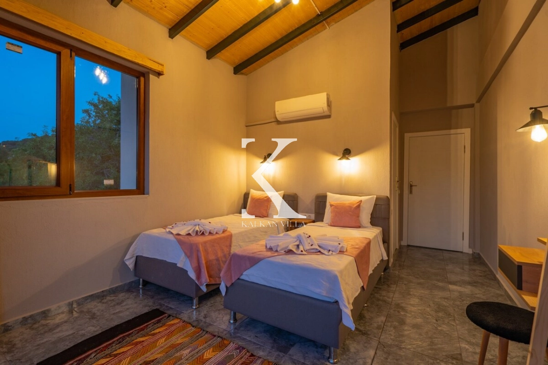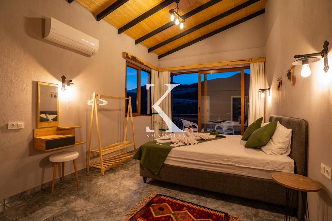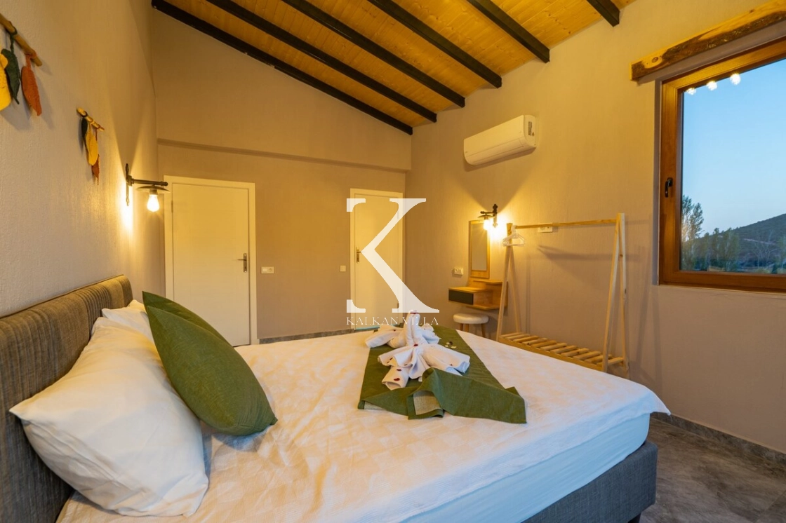 Taş ve ahşap detayların modern mimariyle buluştuğu villada, korunaklı havuz terası sayesinde gözlerden uzak, tamamen size özel bir tatil deneyimi yaşayabilirsiniz.