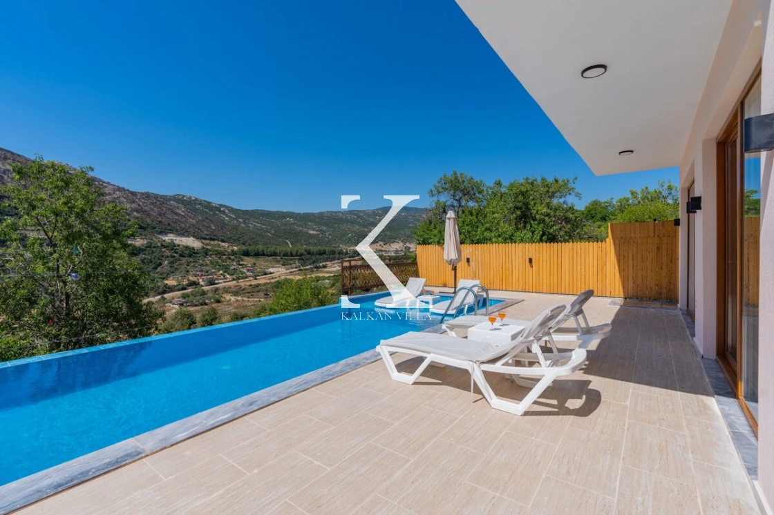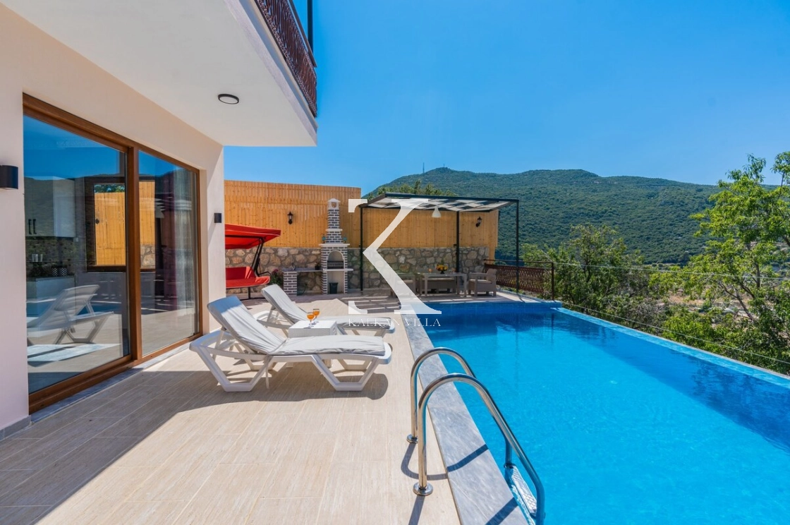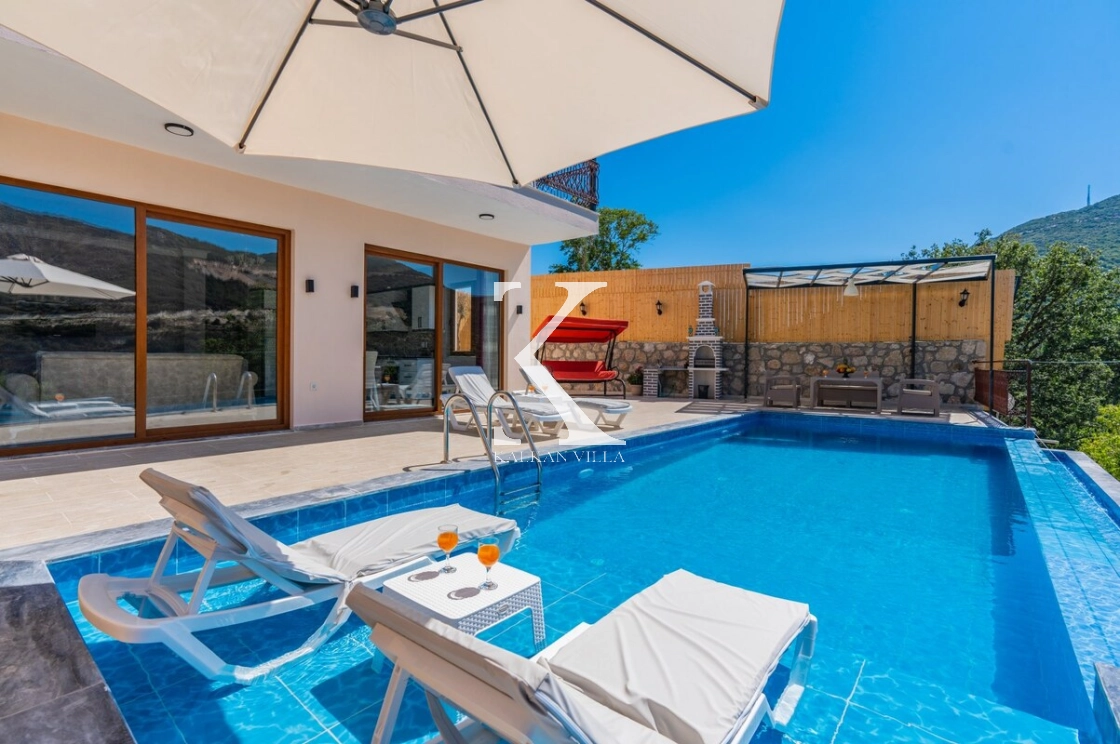 Villa Sarıyar, Kalkan’ın huzur dolu Sarıbelen bölgesinde konumlanan, doğayla iç içe, modern ve konforlu bir tatil villasıdır.