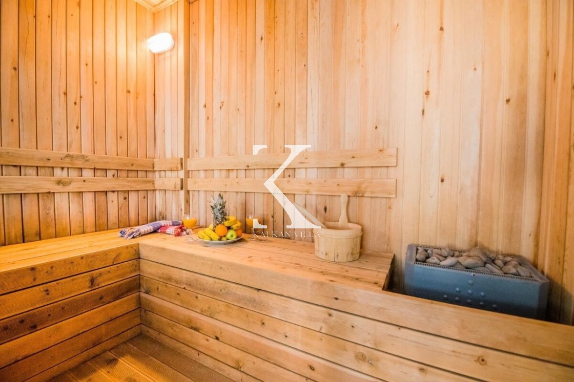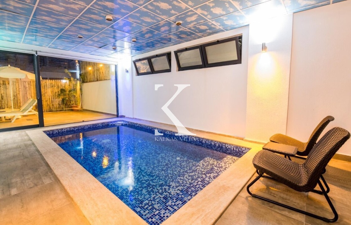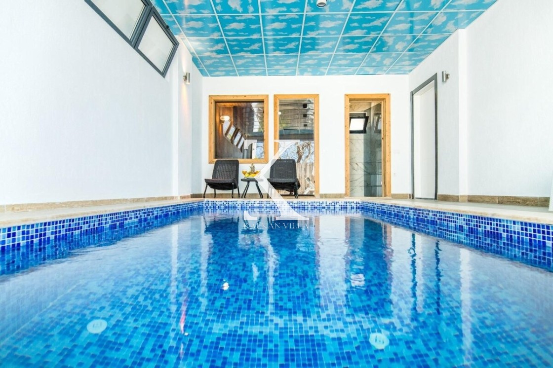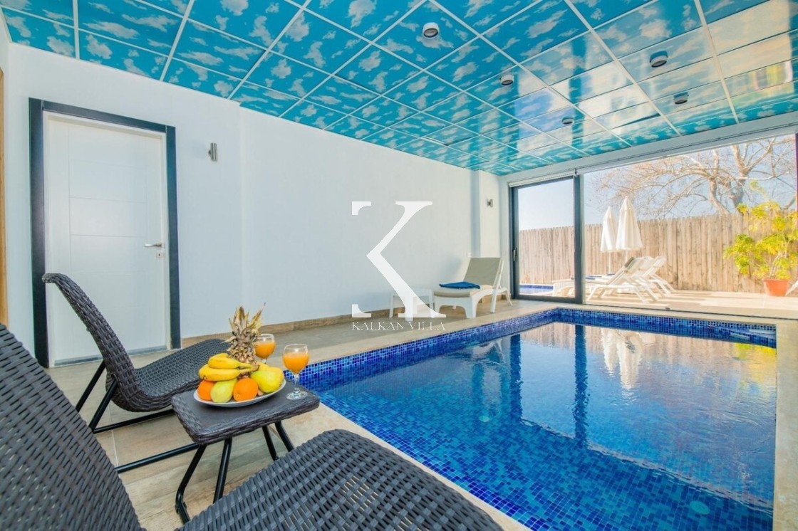 Villada yer alan özel ısıtmalı kapalı havuz, hava koşullarından etkilenmeden dört mevsim yüzme imkânı sunar.