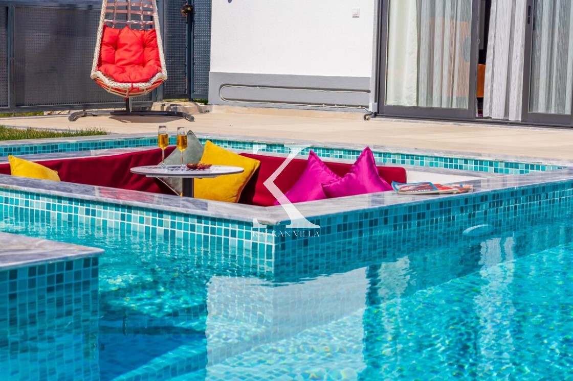 Korunaklı bahçe: havuz, şezlong, salıncak, oturma köşesi & barbekü
