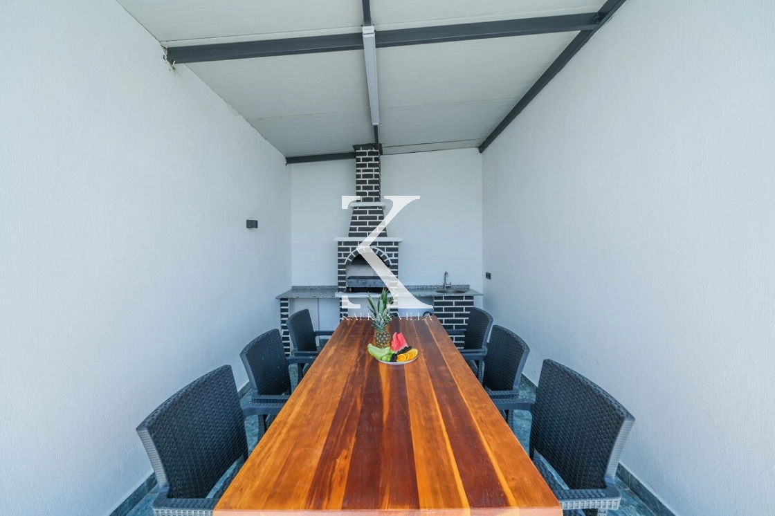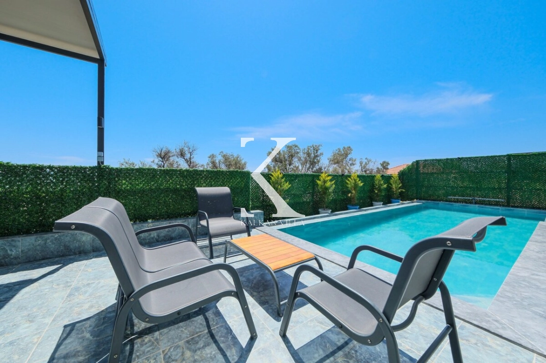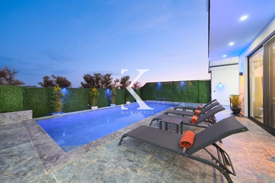 Villanın tam korunaklı özel havuz alanı, dışarıdan görünmeyecek şekilde tasarlanmıştır ve mahremiyete önem veren misafirler için uygundur.