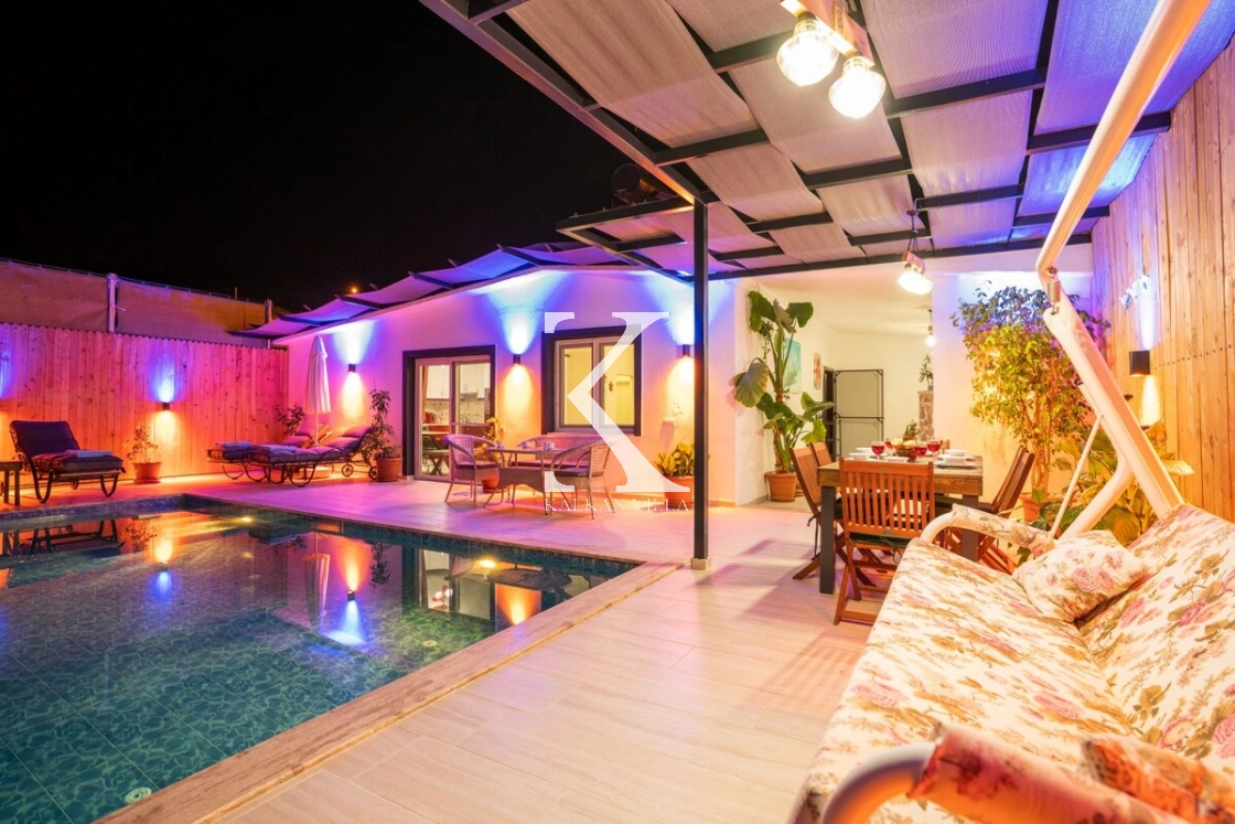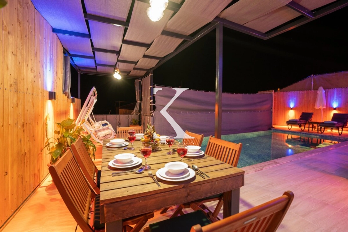2 yatak odalı ve 4 kişilik konaklama kapasitesine sahip olan villamız, tam korunaklı yapısı sayesinde özellikle muhafazakâr aileler ve balayı çiftleri için ideal bir tatil seçeneğidir.