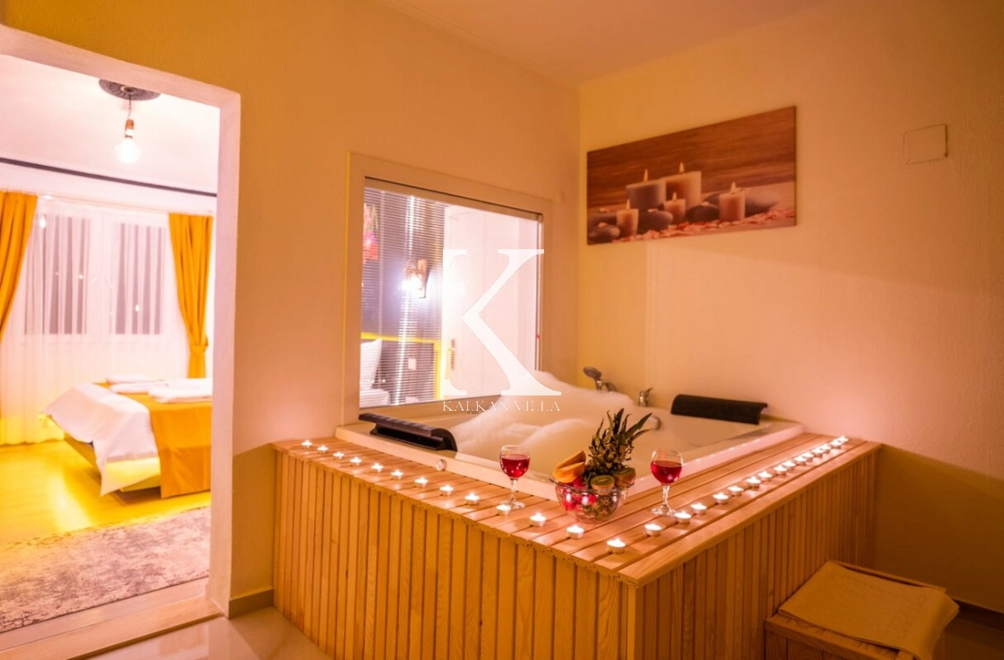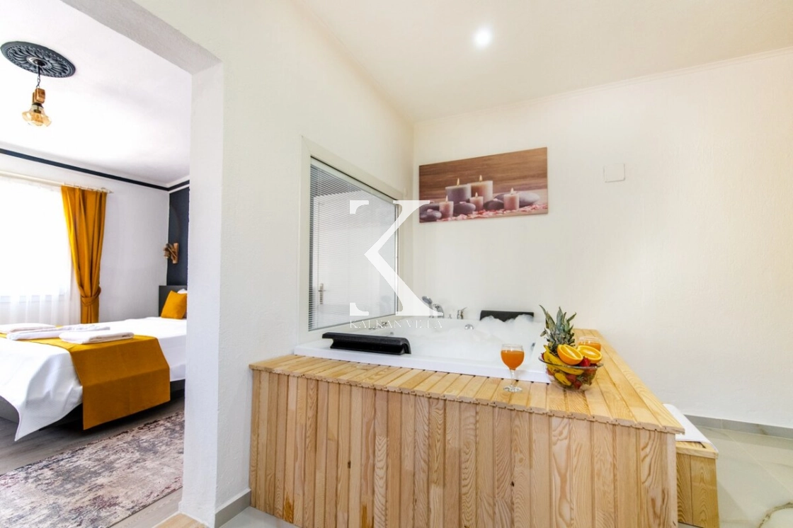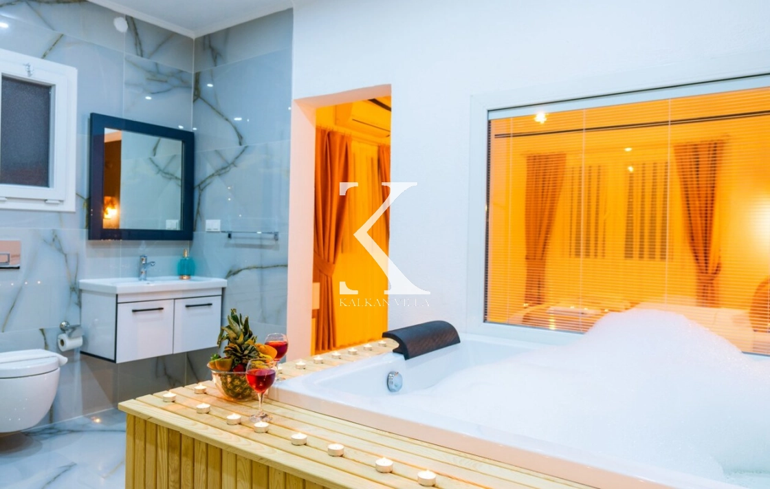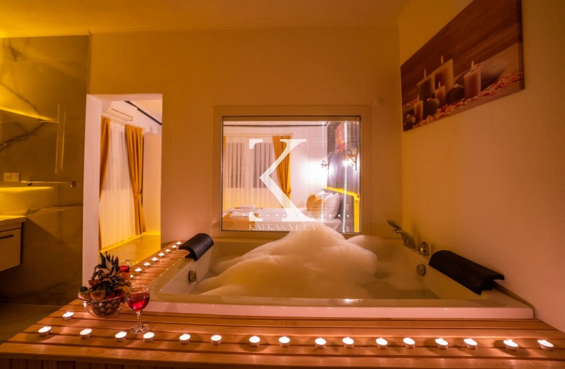 Villa içerisinde bulunan jakuzi, tatiliniz boyunca dinlenmenizi ve rahatlamanızı sağlayacak şekilde tasarlanmıştır.