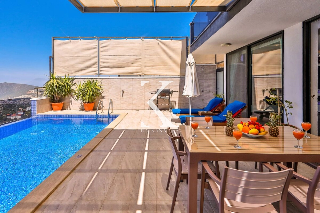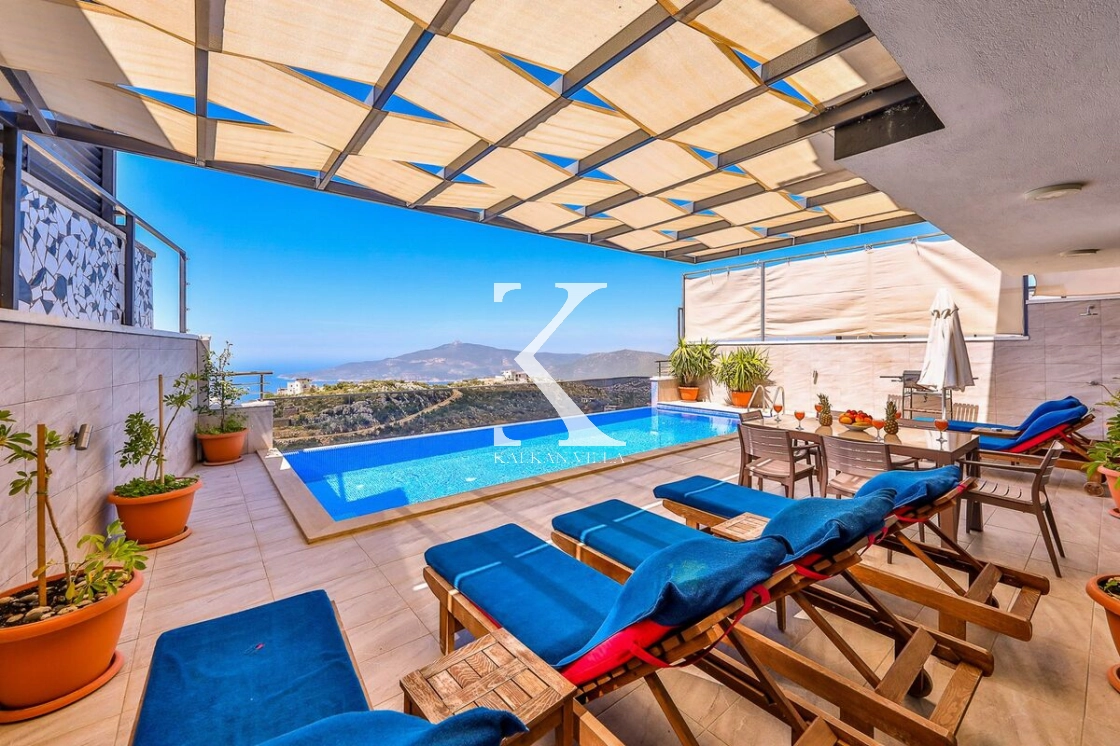 Kalkan Plajı’na yalnızca 10 dakika mesafede bulunan Villa Zas, eğlence, konfor ve manzarayı bir arada sunar.