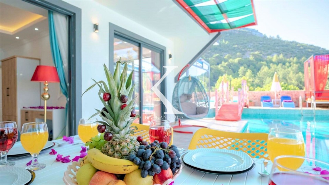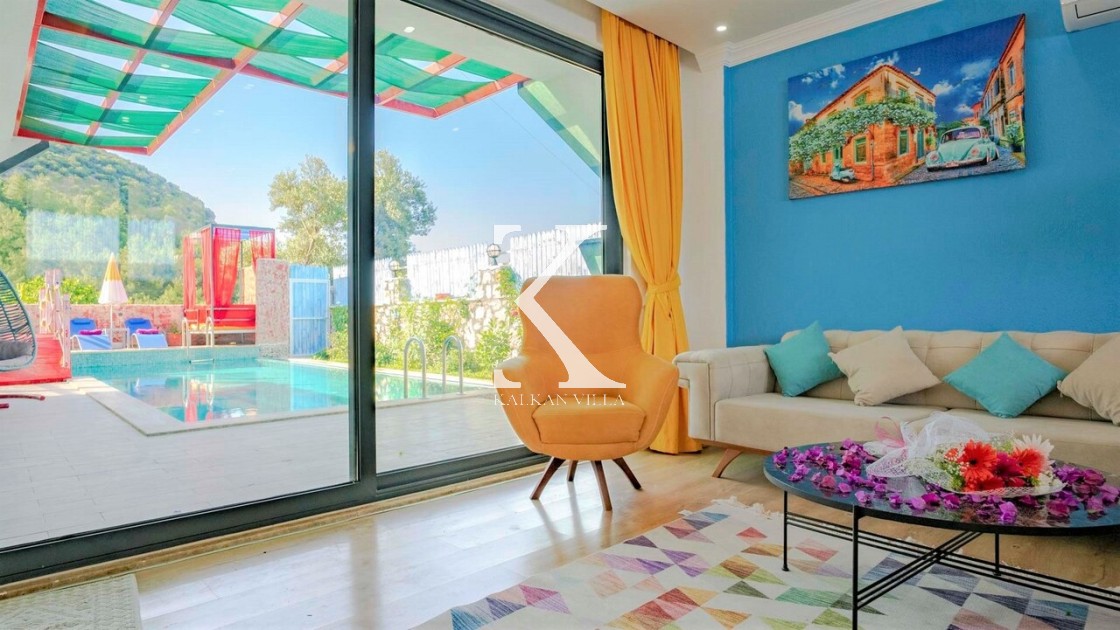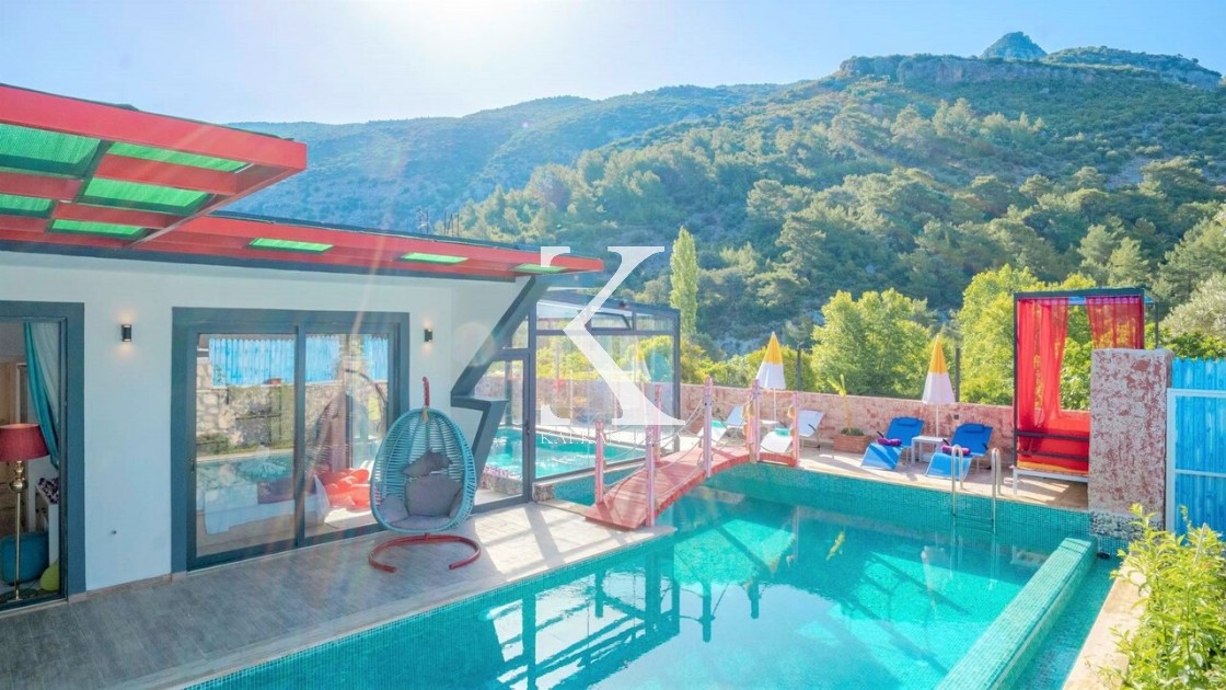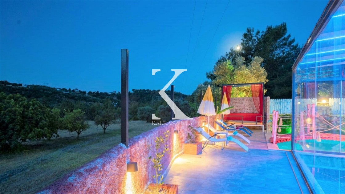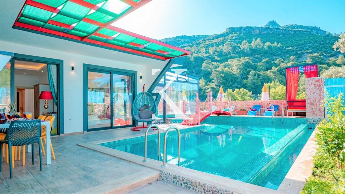 Villa Adalya, Kalkan’ın İslamlar Köyü’nün Öz mevkiinde, doğa ile iç içe konumlanmış lüks bir tatil villasıdır.