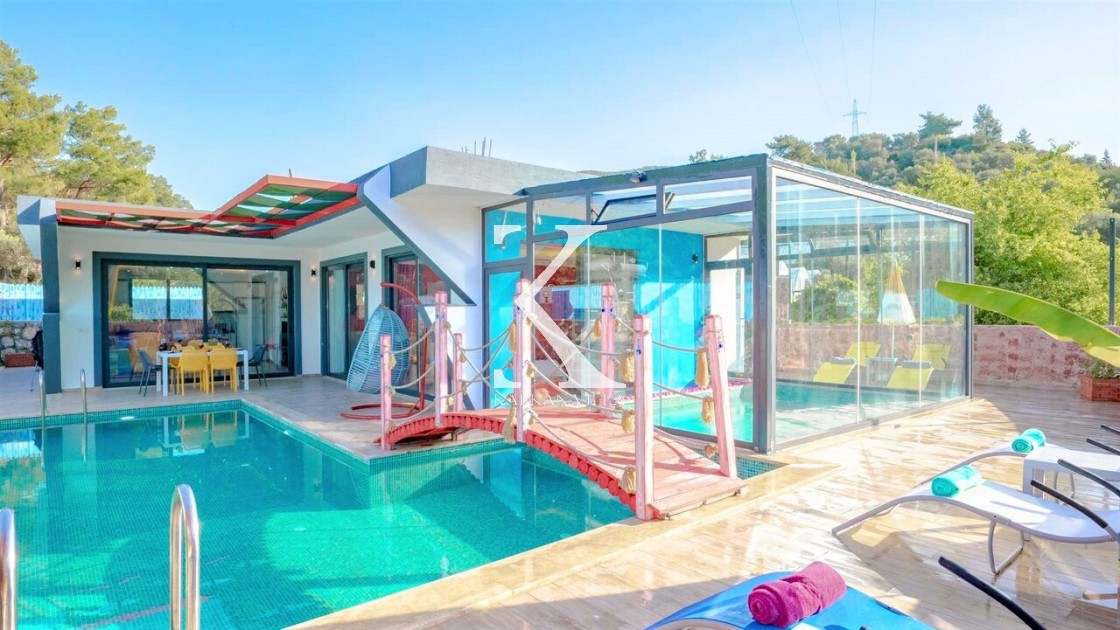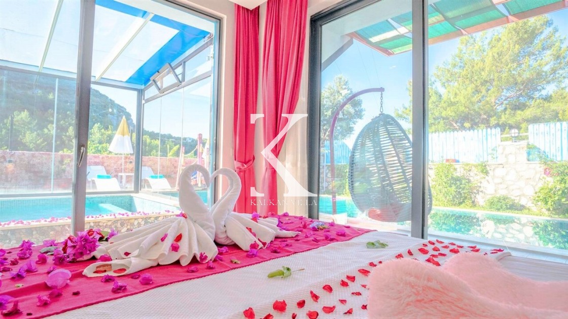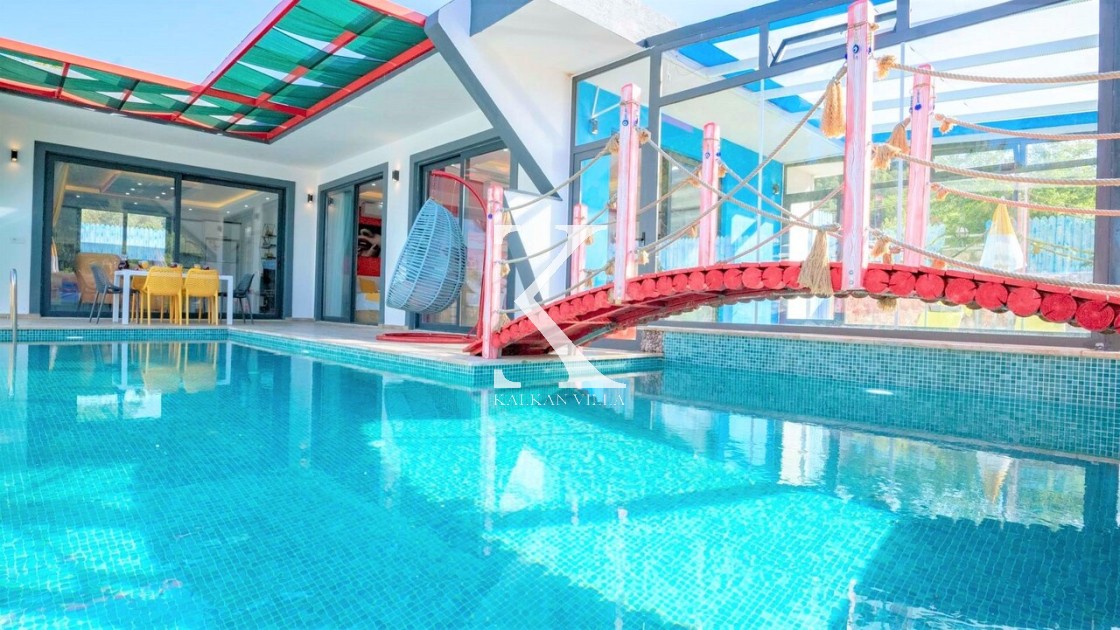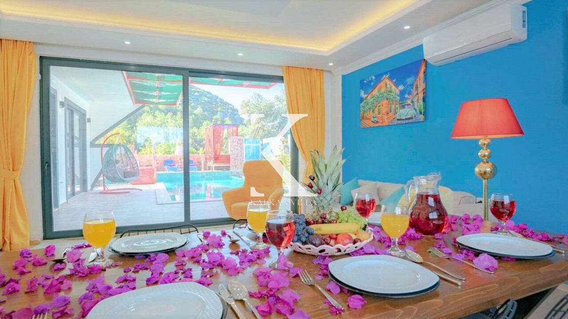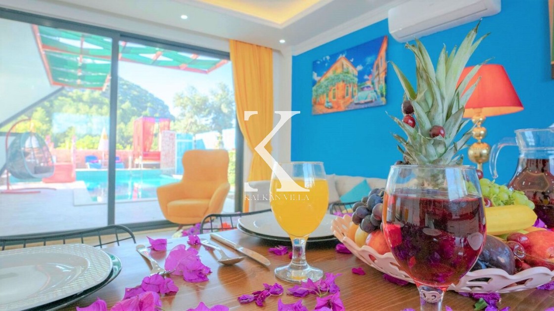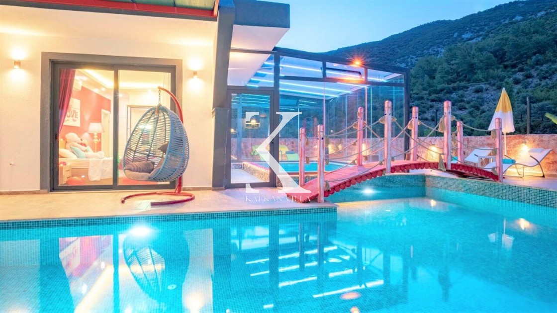 Villa Adalya, Kalkan’ın İslamlar Köyü’nün Öz mevkiinde, doğa ile iç içe konumlanmış lüks bir tatil villasıdır.
