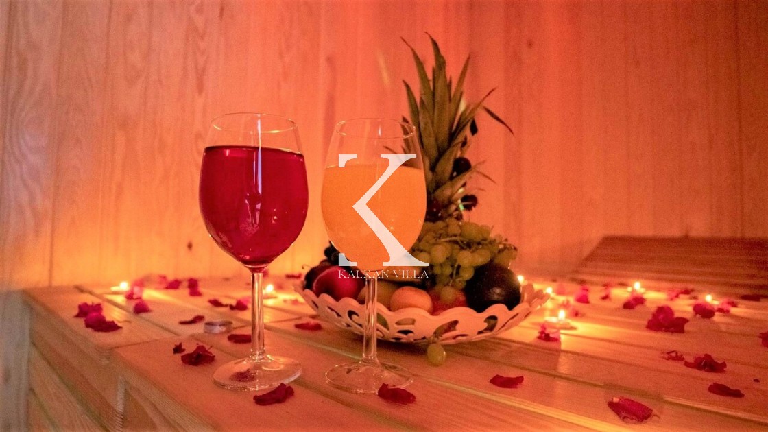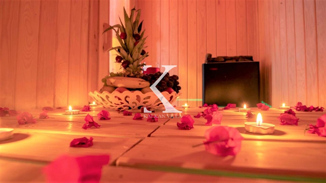 Tamamen korunaklı havuz terasına sahip olan Villa Adalya, misafirlerine gözlerden uzak, huzurlu bir atmosfer sunar. Bahçede özel yüzme havuzu, şezlonglar, oturma köşesi, yemek masası ve barbekü alanı mevcuttur. Villanın iç kısmı modern ve şık detaylarla döşenmiş olup, kapalı ısıtmalı havuz, jakuzi ve sauna gibi konfor artırıcı olanaklarla zenginleştirilmiştir.