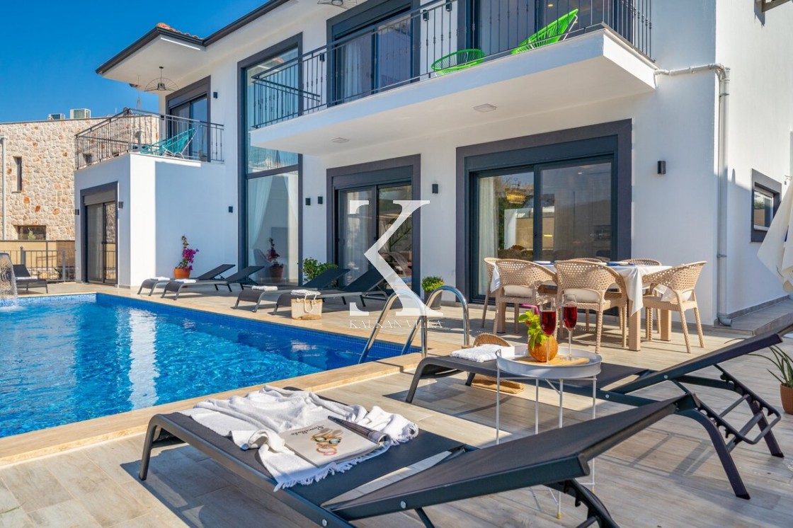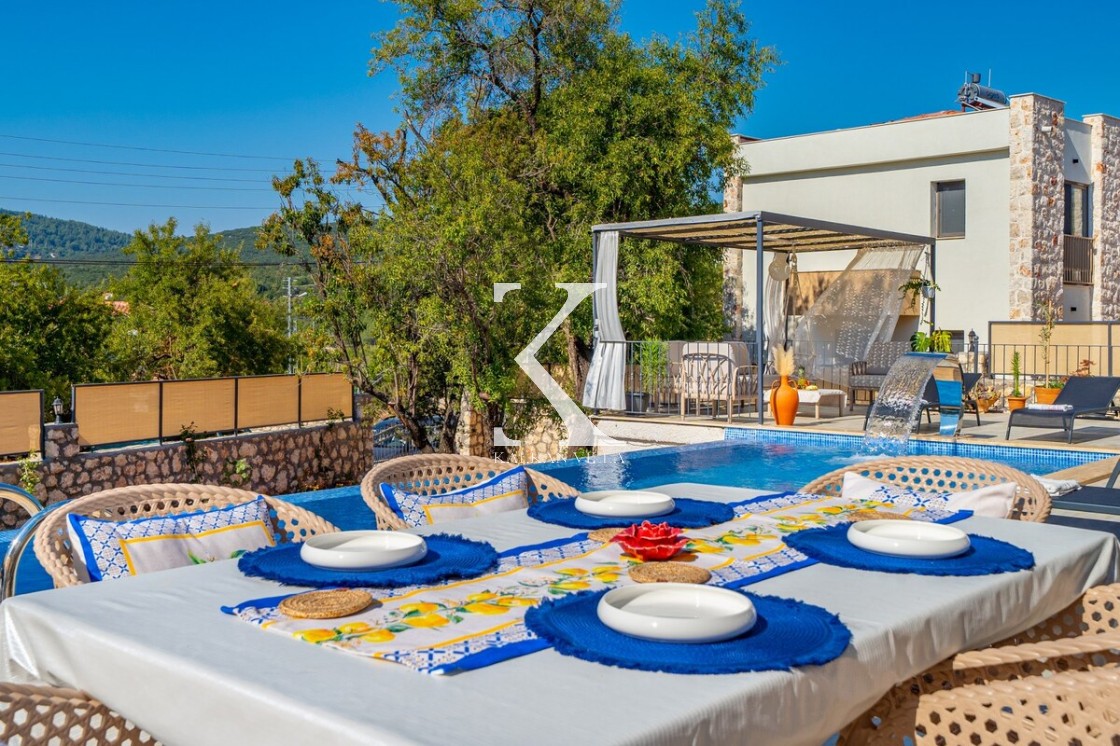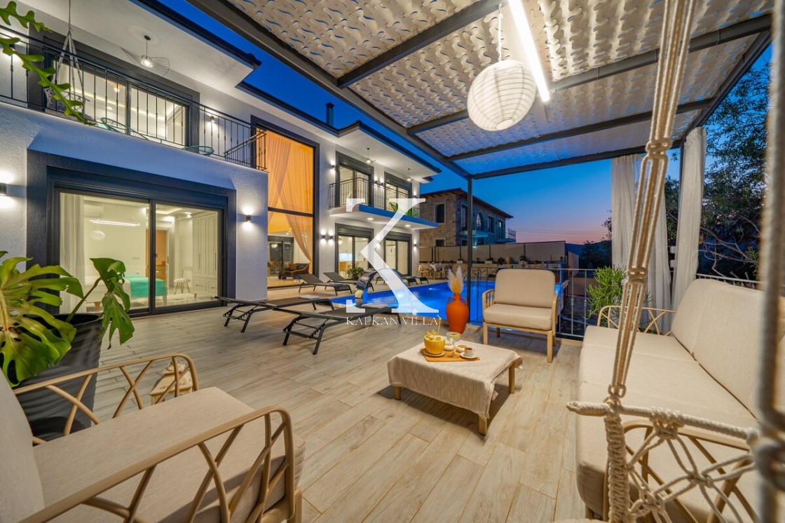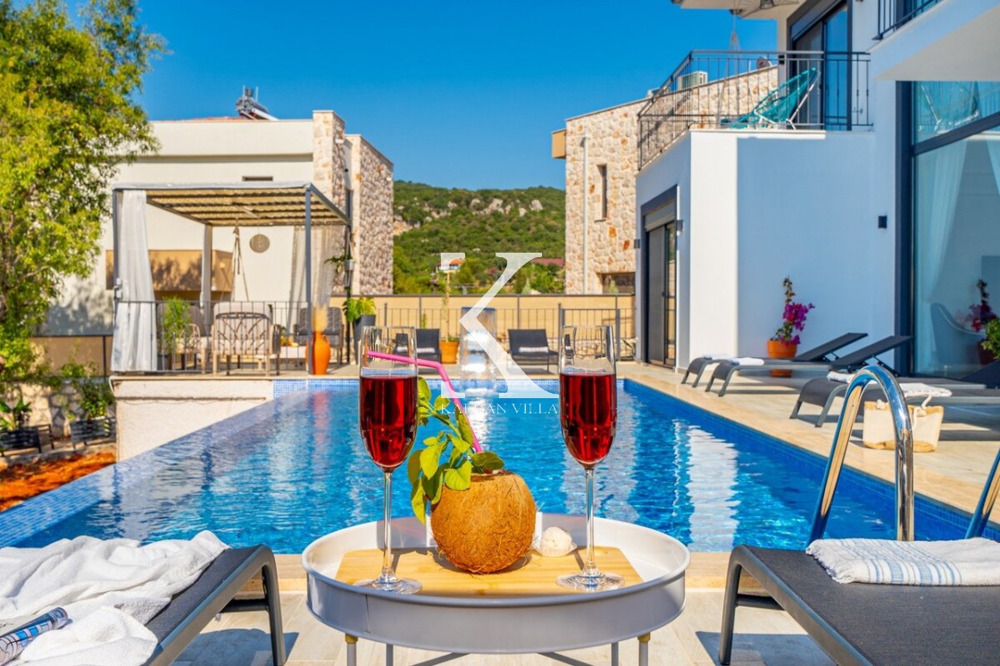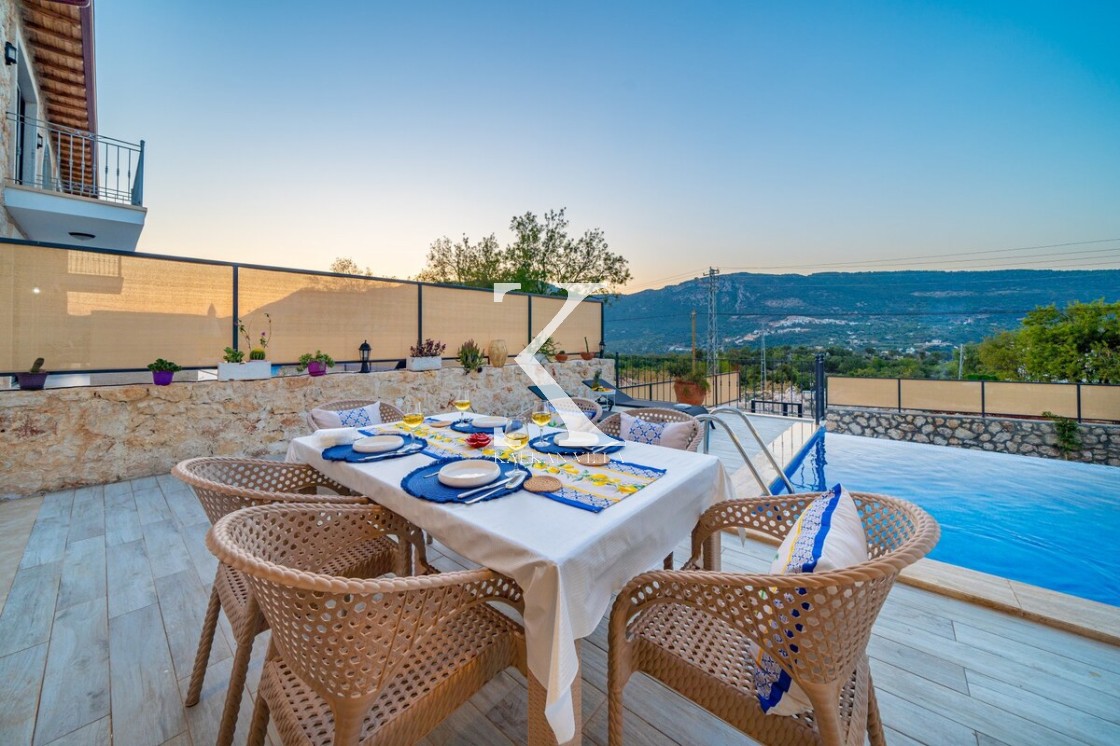 Korunaklı havuz terası, doğa manzarası eşliğinde keyifli vakit geçirmeniz için özel yüzme havuzu, oturma alanı, barbekü alanı ve salıncak ile donatılmıştır. Villa Akça Kaş, hem huzuru hem de konforu bir arada arayan 8 kişilik aile ve arkadaş grupları için harika bir tatil seçeneğidir.