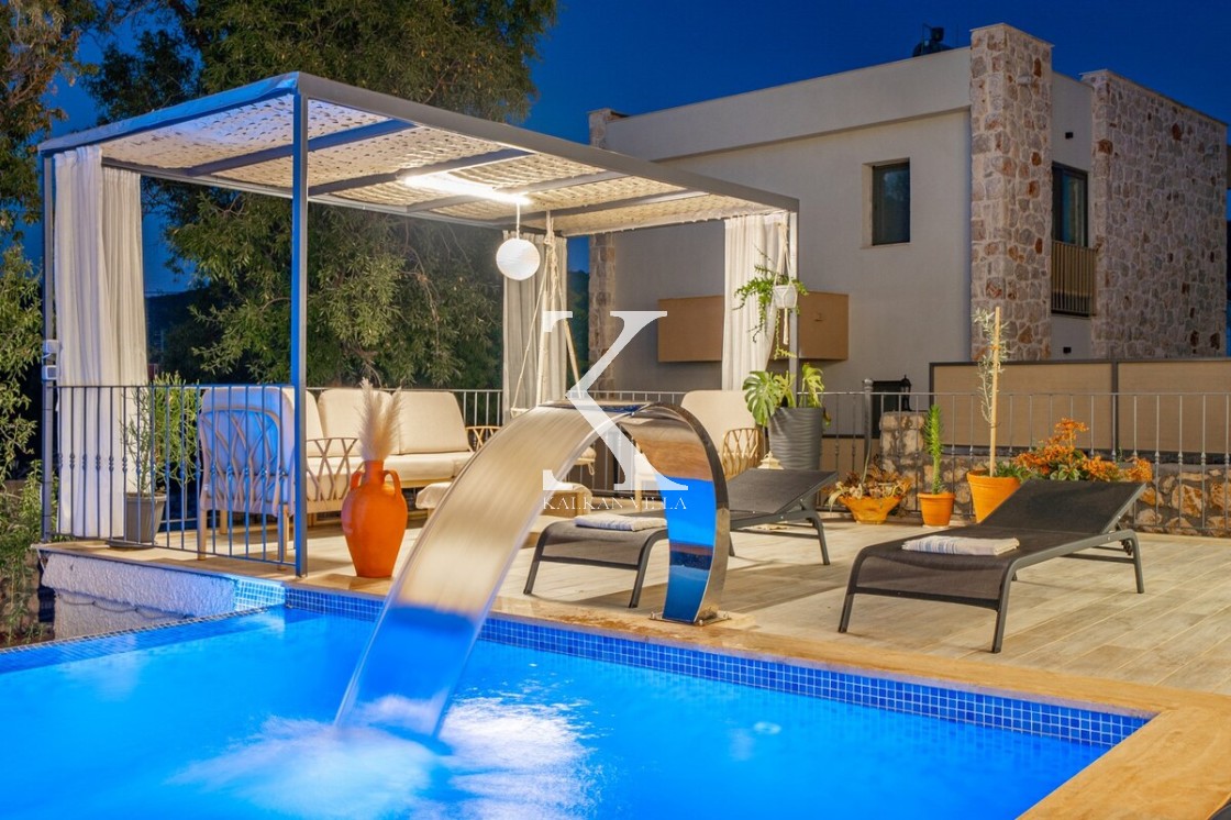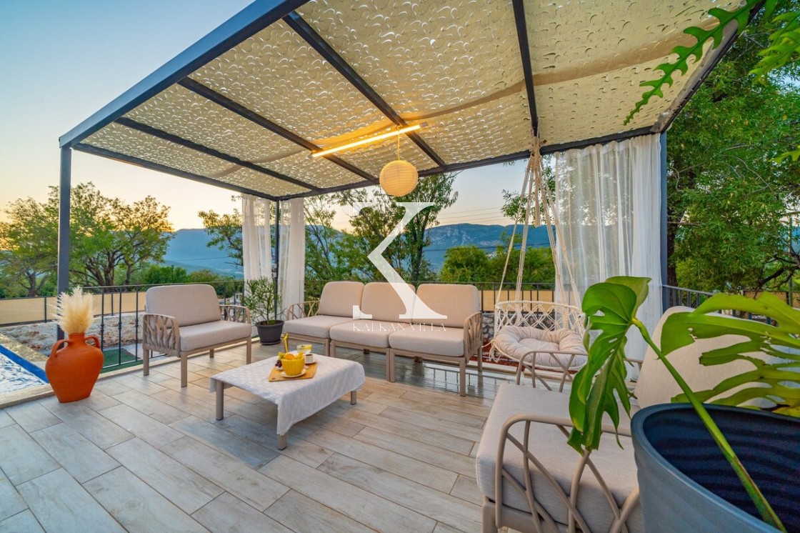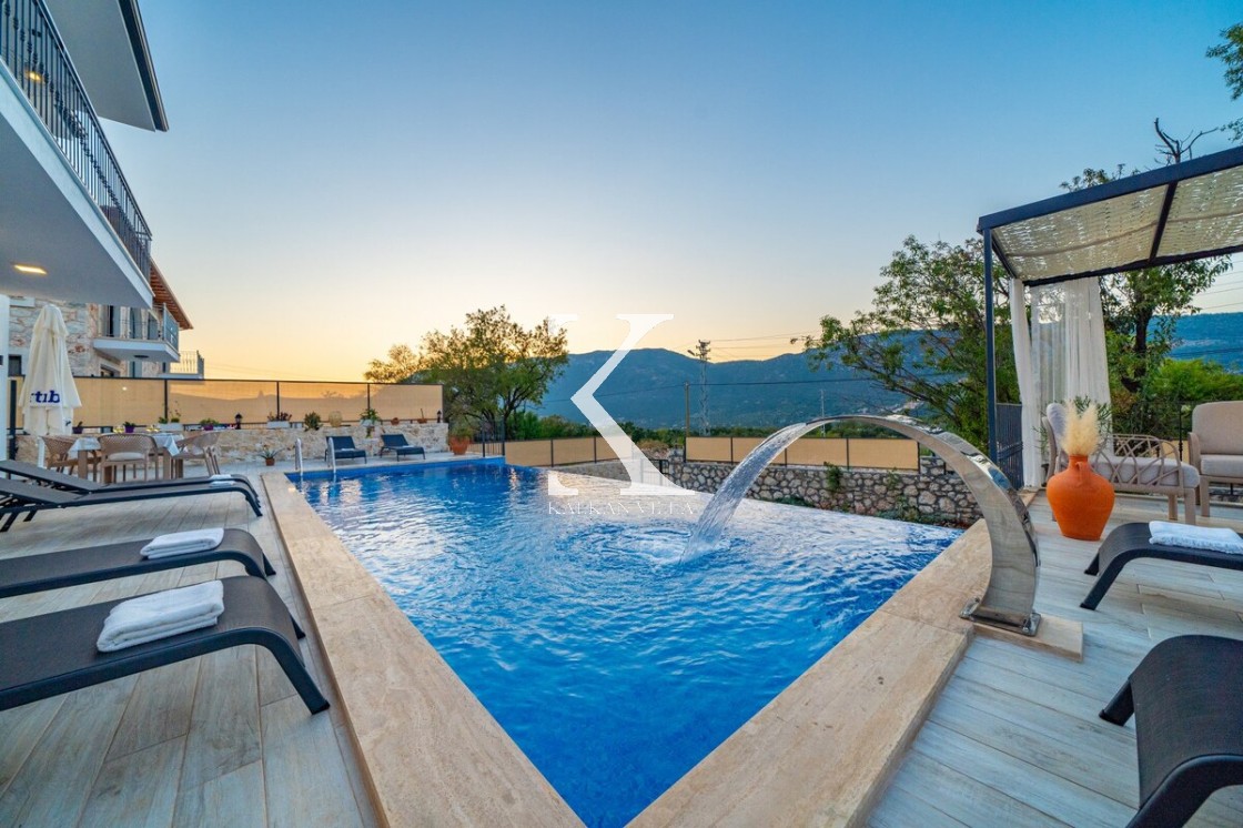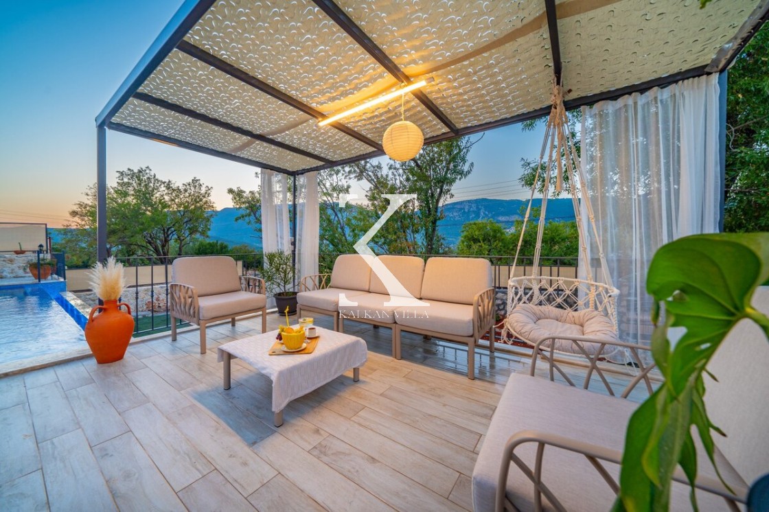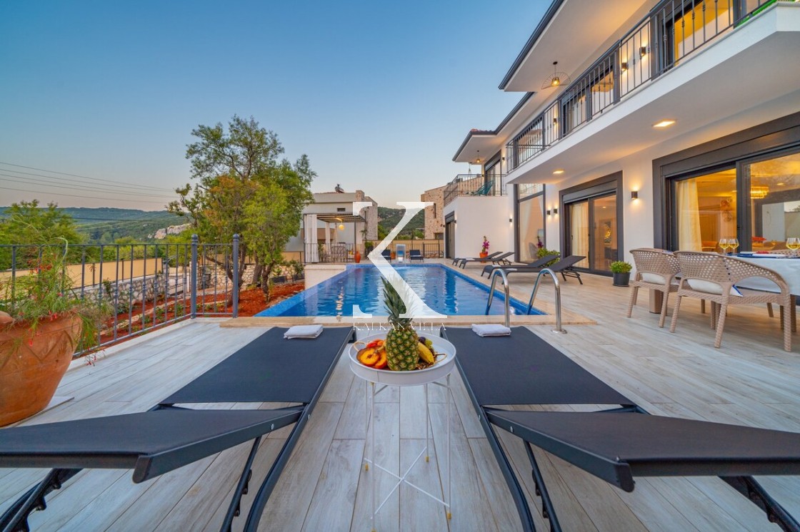 Korunaklı havuz terası, doğa manzarası eşliğinde keyifli vakit geçirmeniz için özel yüzme havuzu, oturma alanı, barbekü alanı ve salıncak ile donatılmıştır. Villa Akça Kaş, hem huzuru hem de konforu bir arada arayan 8 kişilik aile ve arkadaş grupları için harika bir tatil seçeneğidir.
