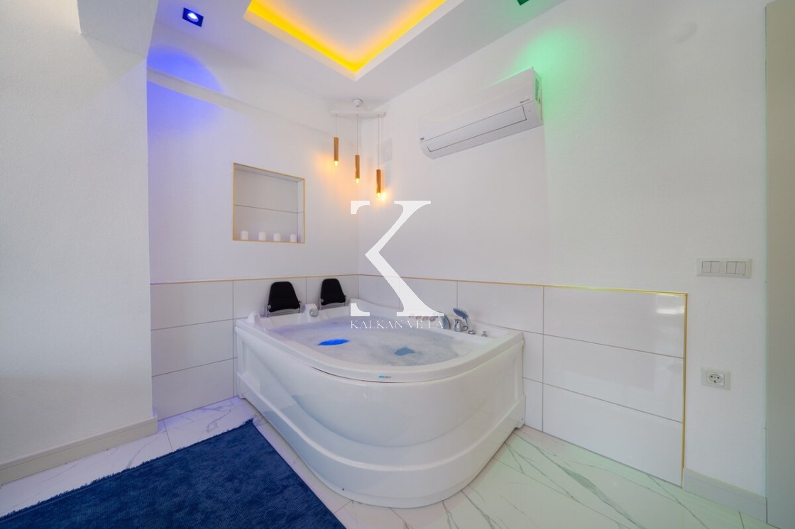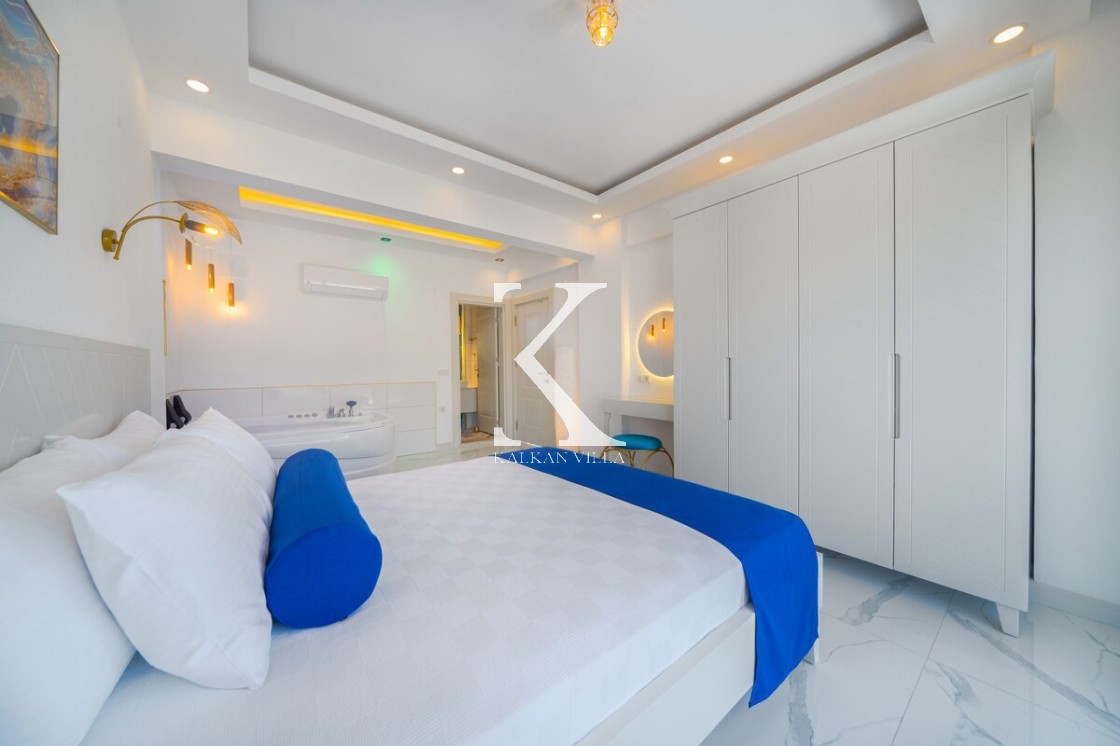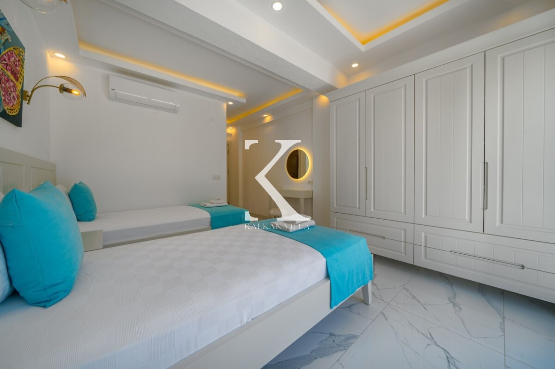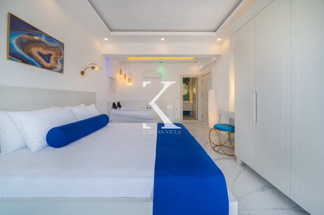 Villanın yatak odalarında 3 adet çift kişilik ve 2 adet tek kişilik yatak bulunmakta olup, odalardan birinde jakuzi yer almaktadır. Tüm odalarda özel banyo ve tuvalet bulunması, konfor ve mahremiyet seviyesini üst düzeye çıkarmaktadır.