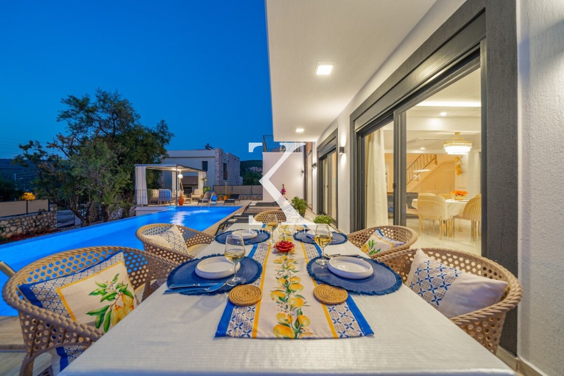 Villa Akça Kaş, Kaş’ın doğal güzellikleriyle öne çıkan Çukurbağ bölgesinde, doğa içinde konumlanmış, 4 yatak odalı ve 8 kişilik konaklama kapasiteli lüks bir kiralık villadır. İç mekânı modern ve konforlu şekilde tasarlanan villa, kalabalık aileler ve arkadaş grupları için ideal bir tatil ortamı sunar.