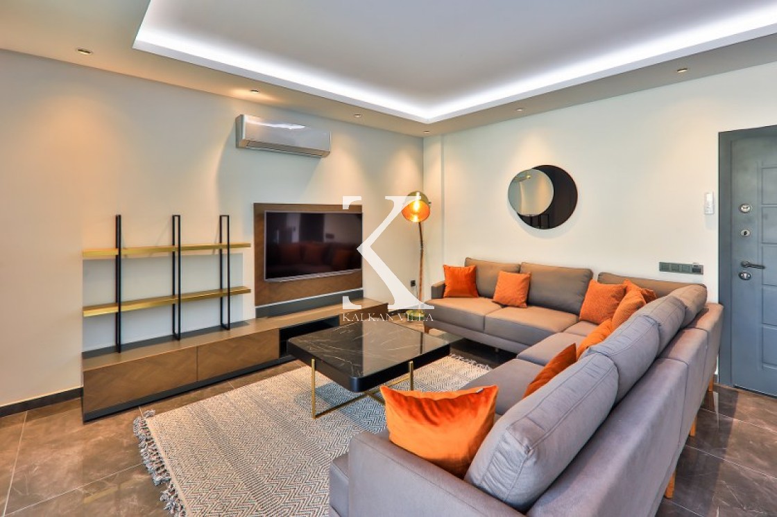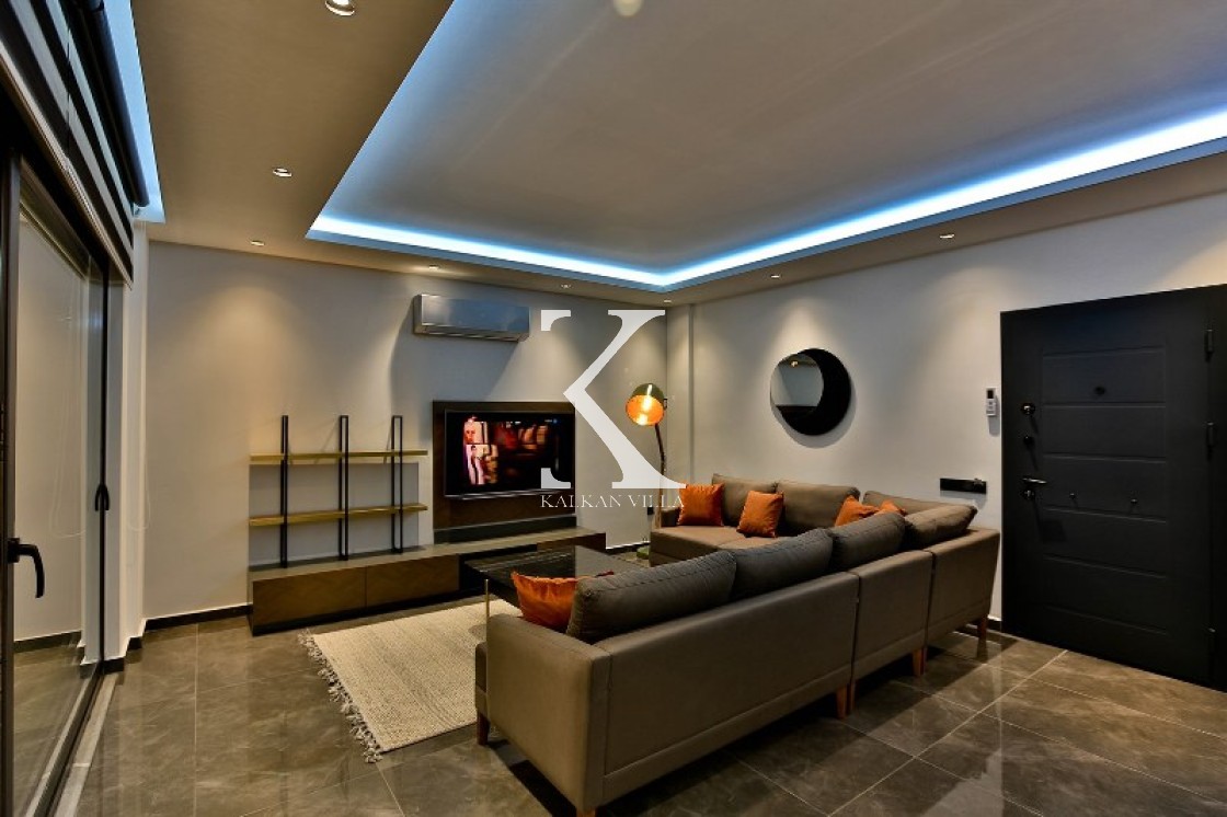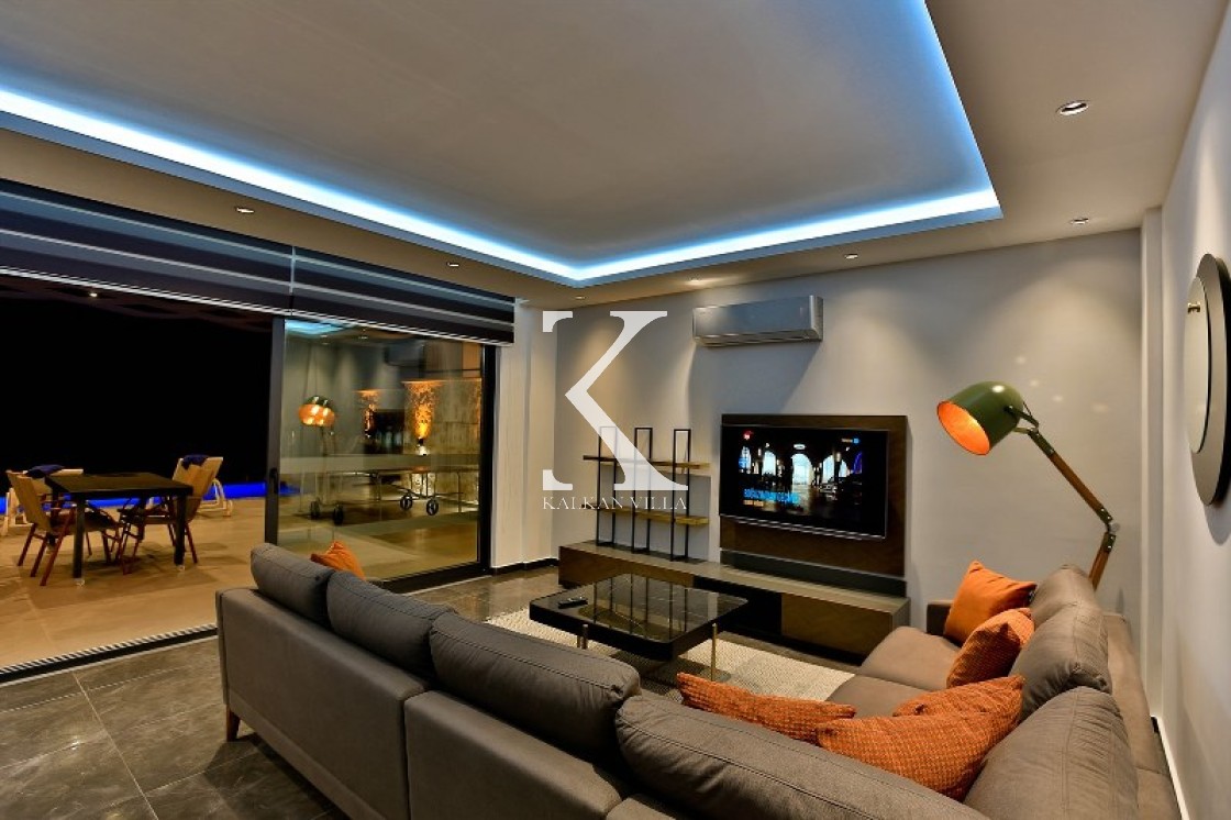 Doğa manzaralı salonda konforlu L koltuk, TV, TV ünitesi, DVD oynatıcı, internet ve klima bulunmaktadır. Salondan havuz terasına direkt çıkış vardır.