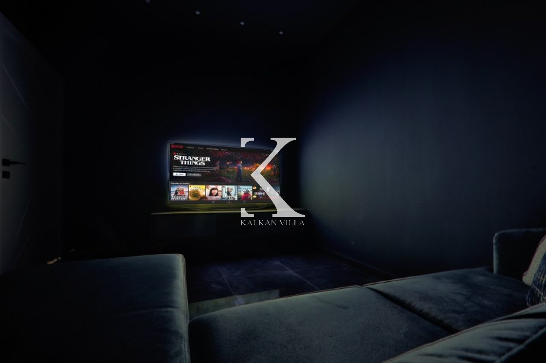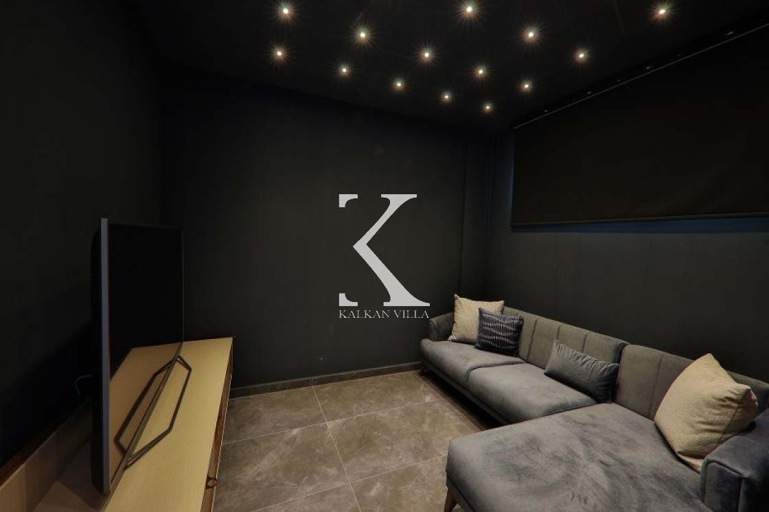 Rahat oturma alanı ve büyük ekran TV/film ekipmanları ile sinema keyfi yaşayabileceğiniz özel bir oda bulunmaktadır (sitede kısaca “sinema odası mevcuttur” diye geçirebilirsin).