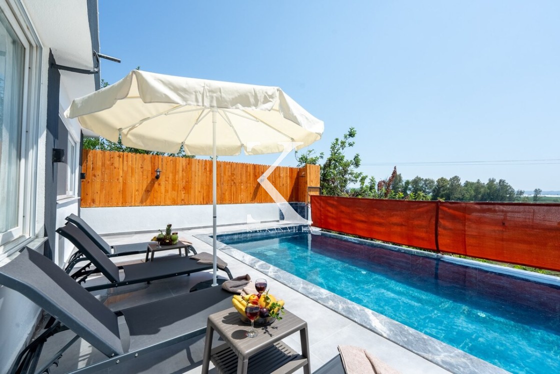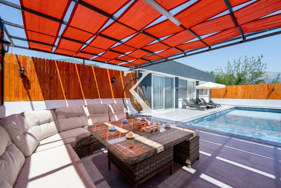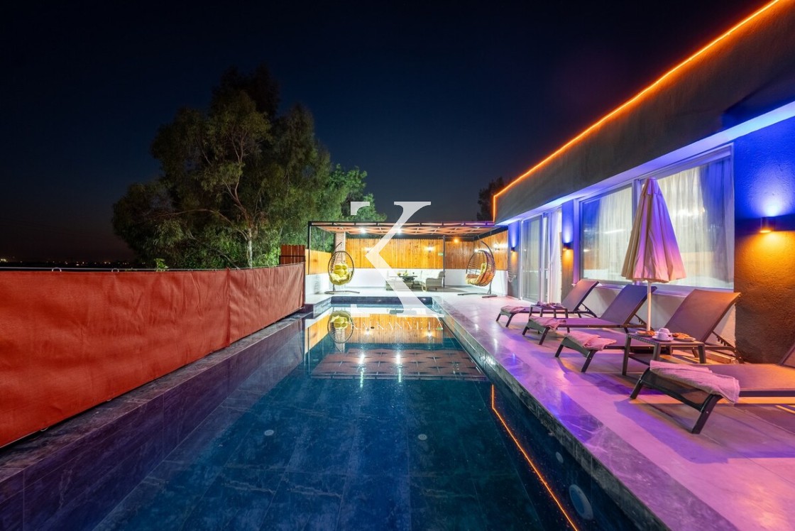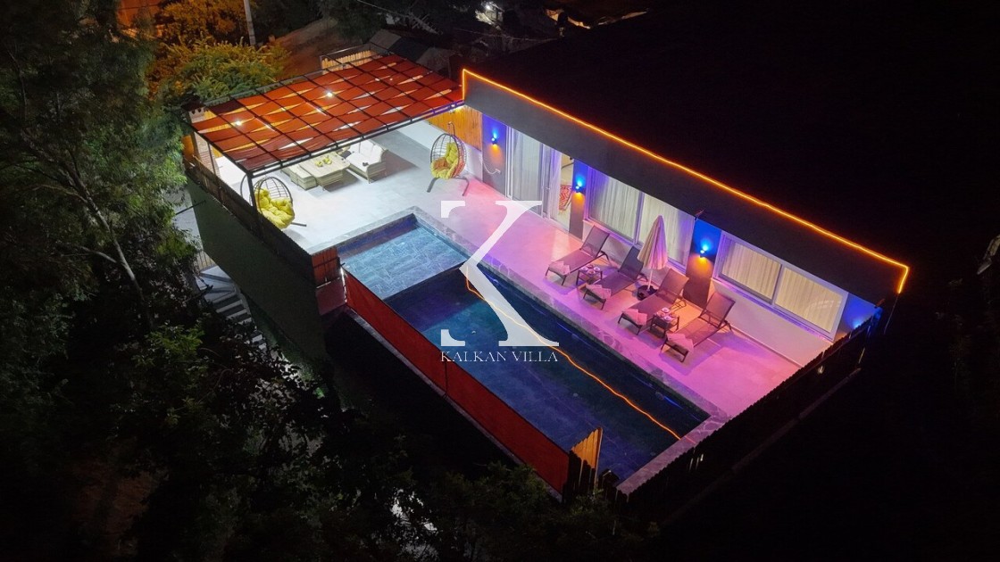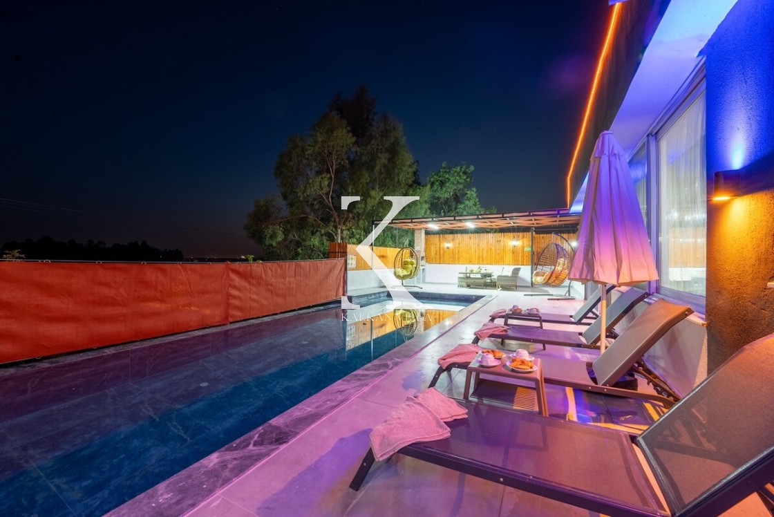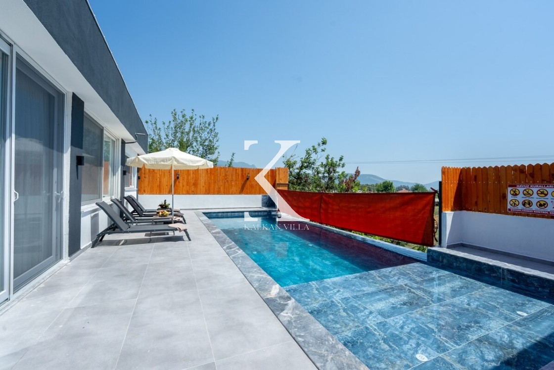 Doğayla iç içe, korunaklı yapıda, 3 yatak odalı – 6 kişilik, jakuzili modern villa. Sakin konumu, özel havuzu ve geniş yaşam alanlarıyla balayı çiftleri, muhafazakâr ve çekirdek aileler için ideal.