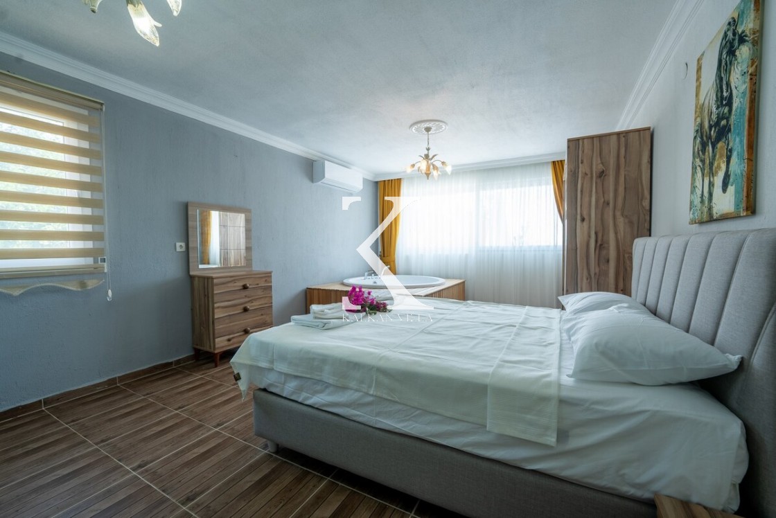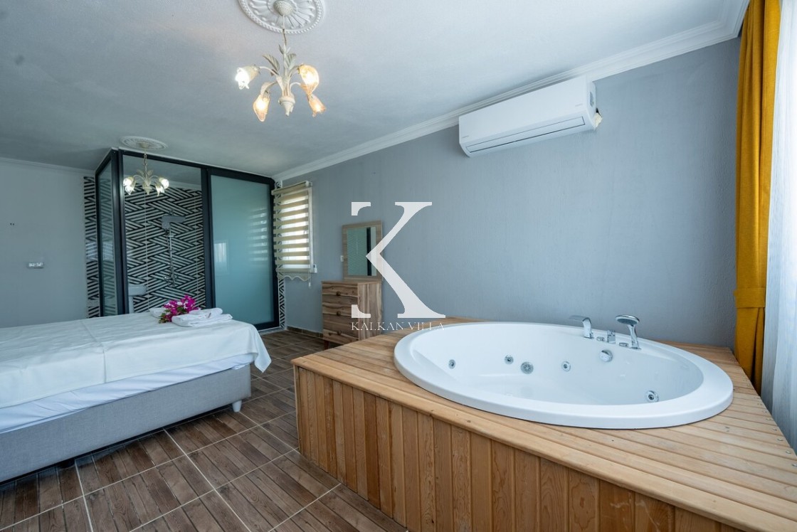 Ebeveyn: Çift kişilik yatak, jakuzi, klima, komodin, elbise dolabı, makyaj masası, banyo & WC