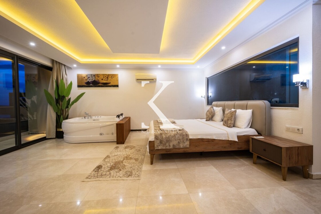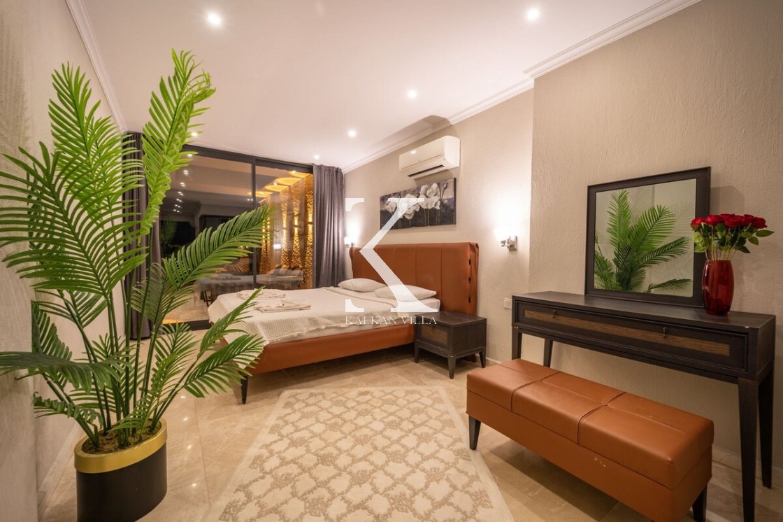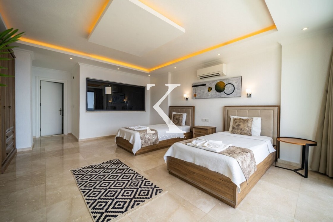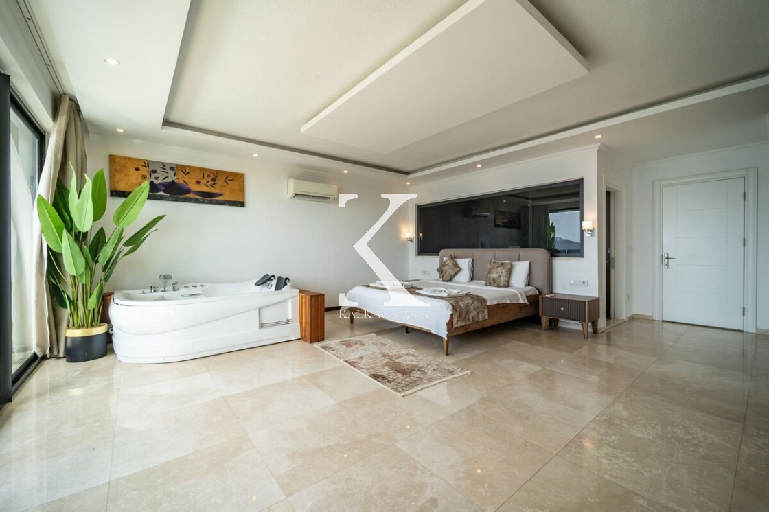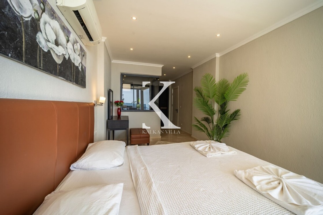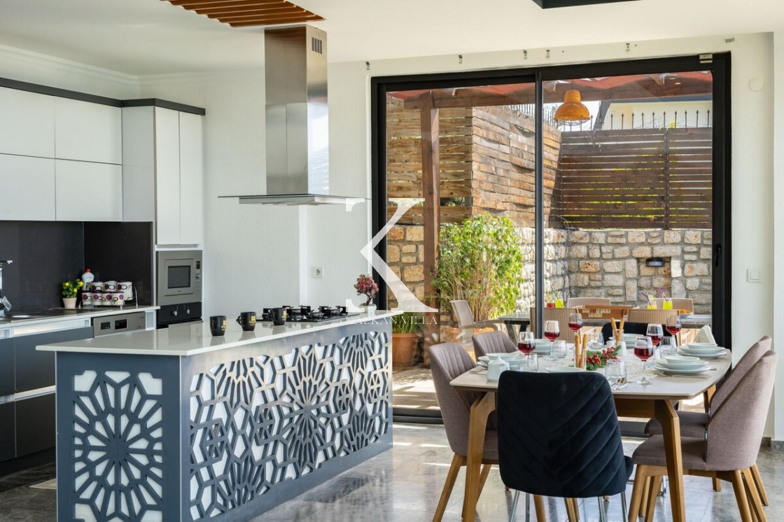 Doğayla iç içe, panoramik deniz manzaralı, 3 yatak odalı – 6 kişilik lüks villa. Sonsuzluk havuzu, hamam, sauna ve jakuzi gibi ayrıcalıklarla; huzur ve konforu bir arada sunar. Havuz terasının kısmi korunaklı yapısı sayesinde muhafazakâr aileler ve balayı çiftleri için uygundur.