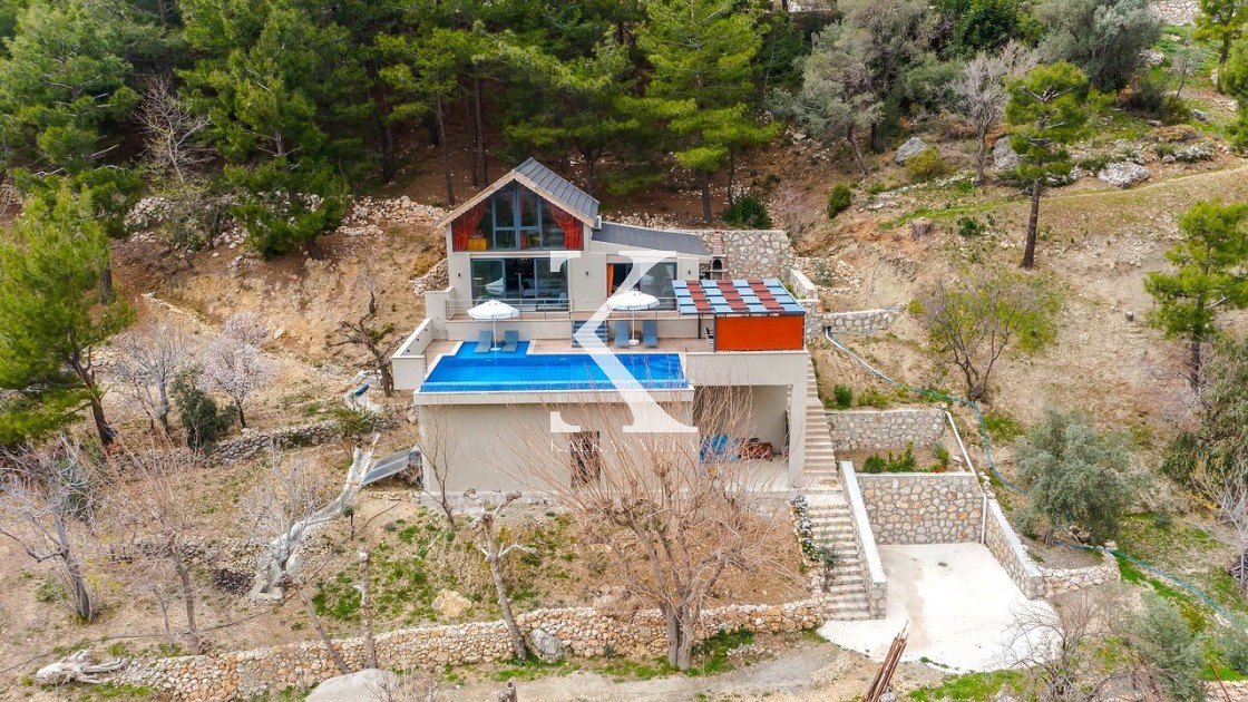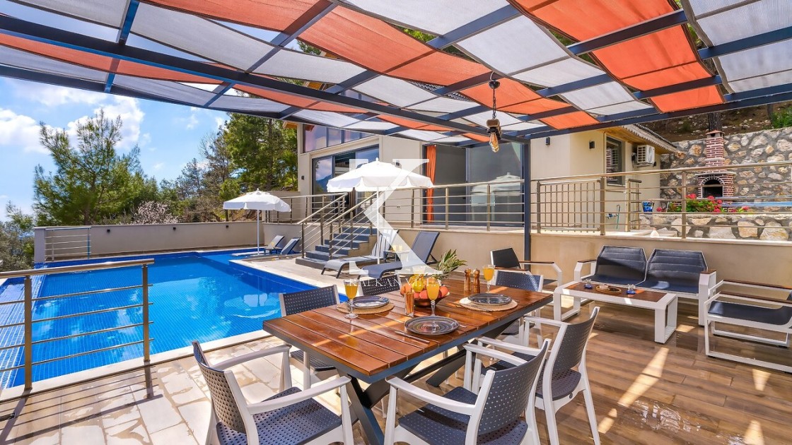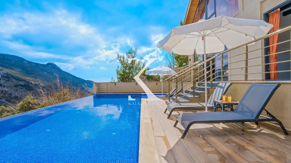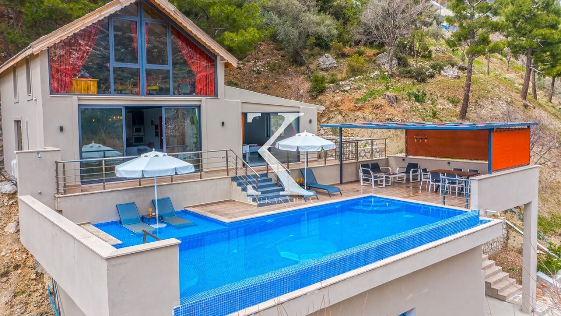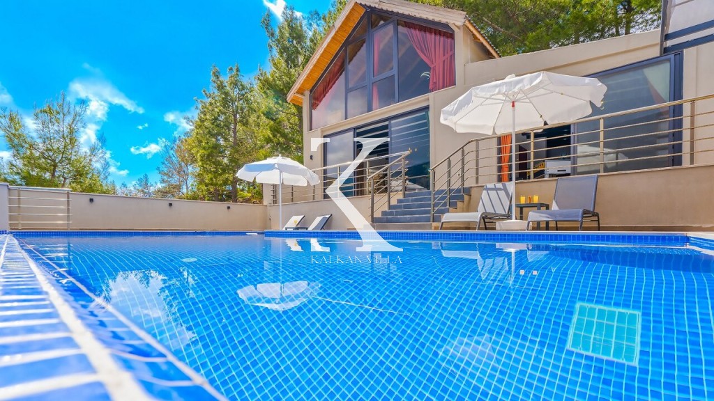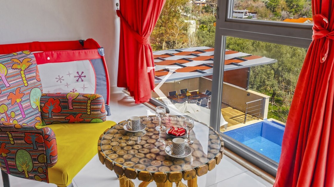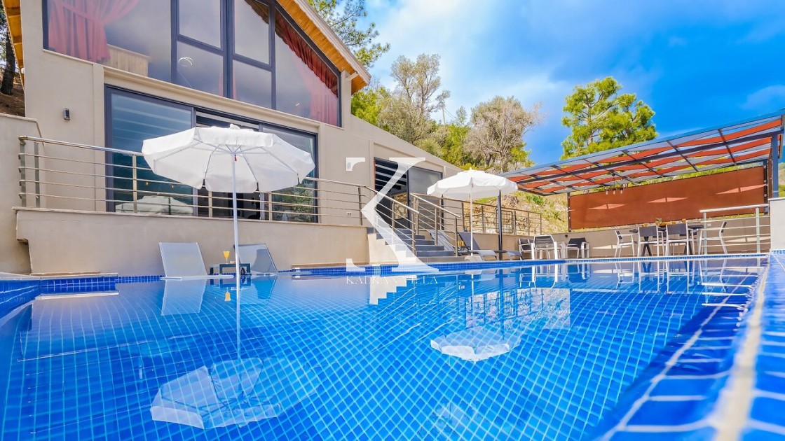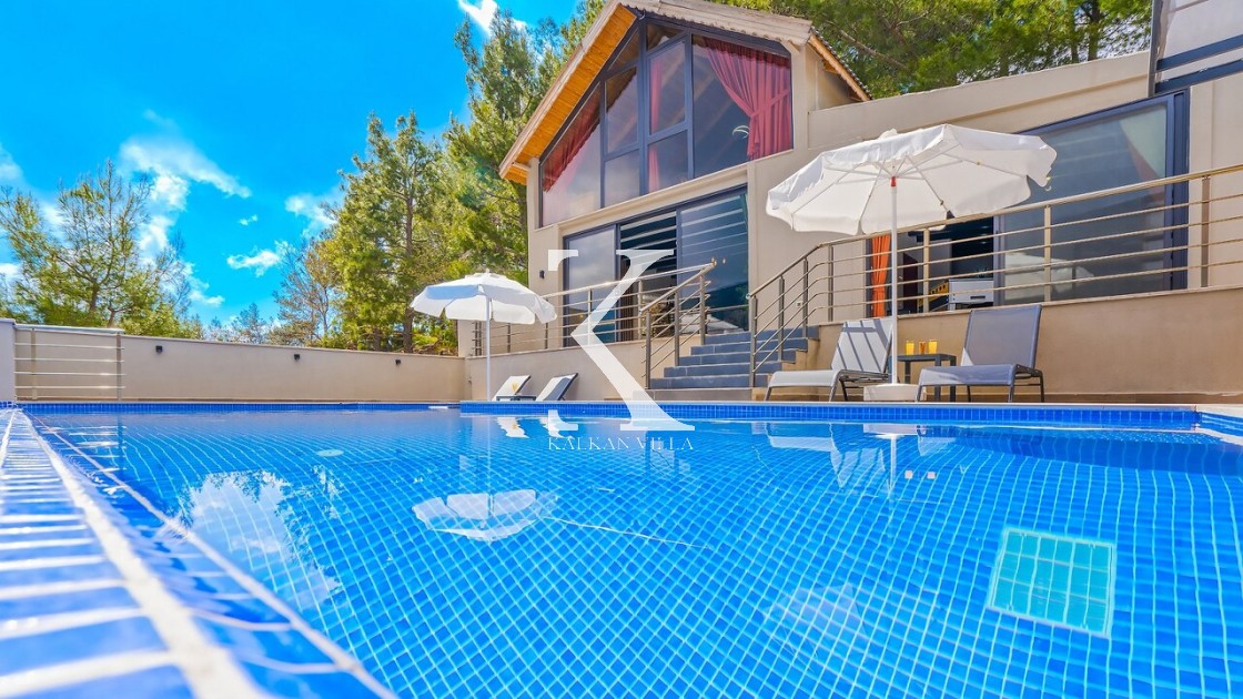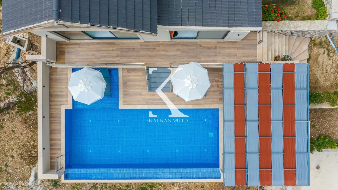 Tamamen korunaklı havuz terası sayesinde dışarıdan görünmeyen bu özel villa, balayı çiftleri ve çekirdek aileler için huzurlu bir tatil fırsatı sunar.