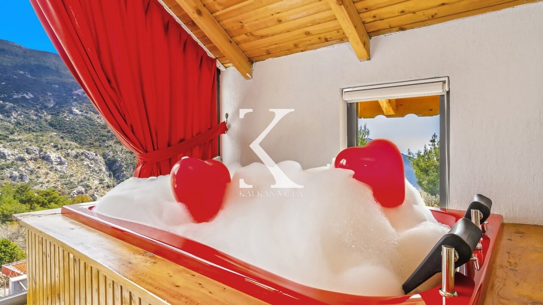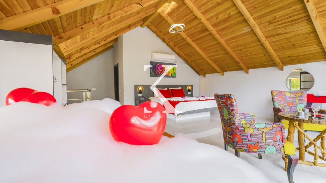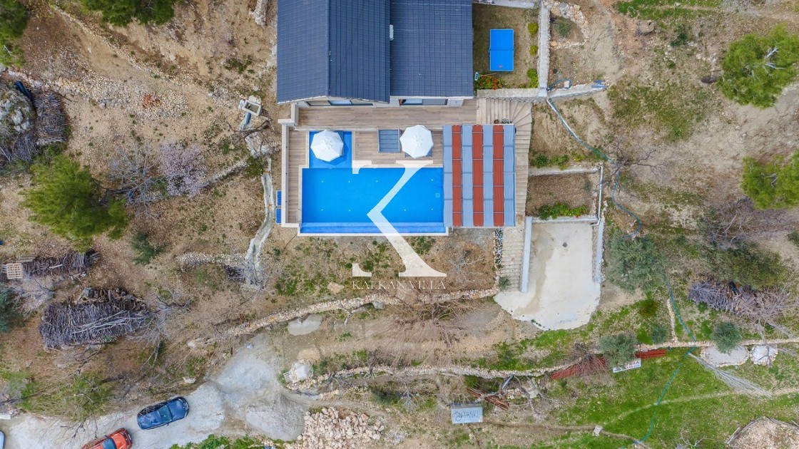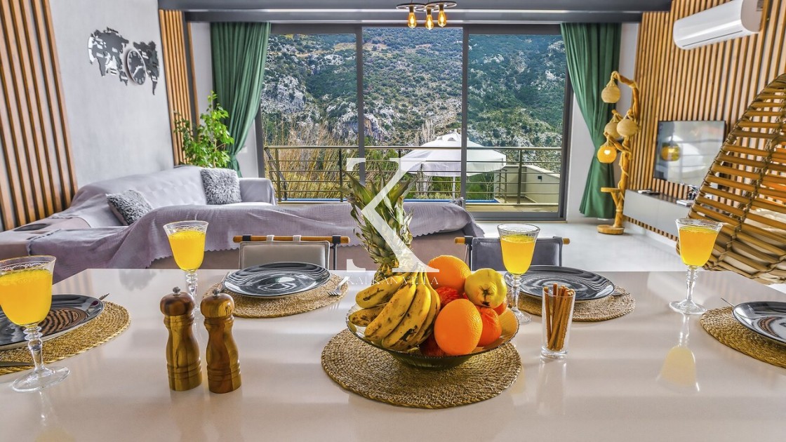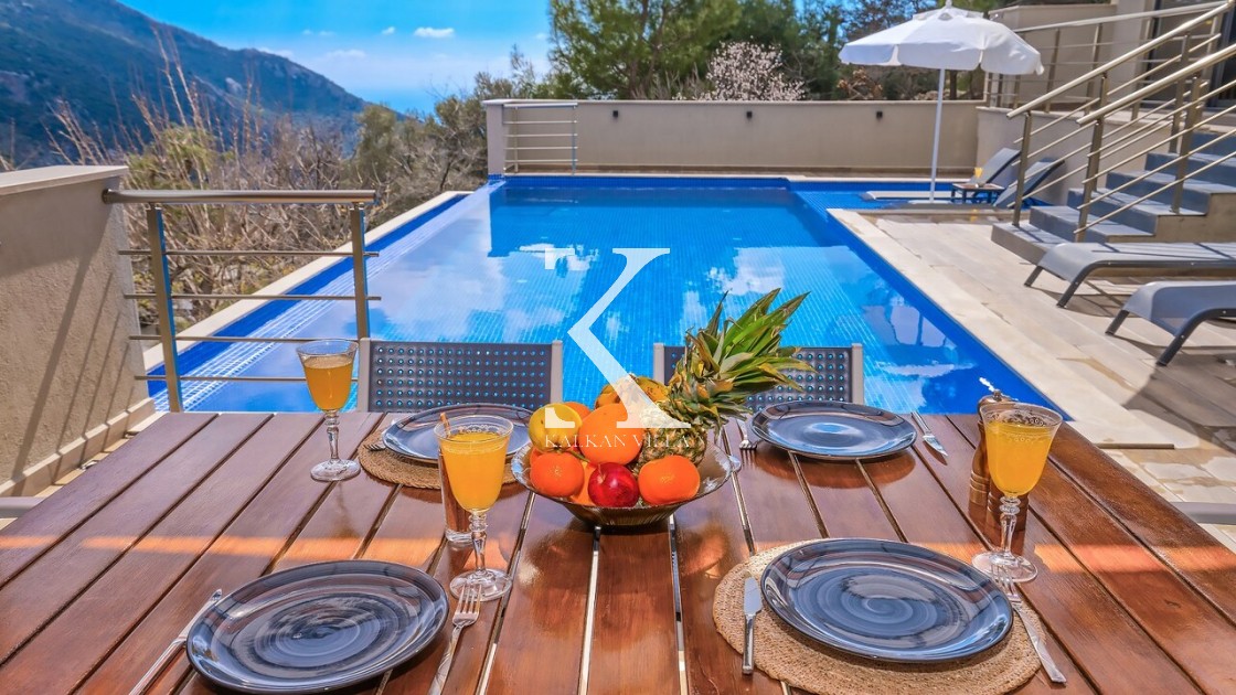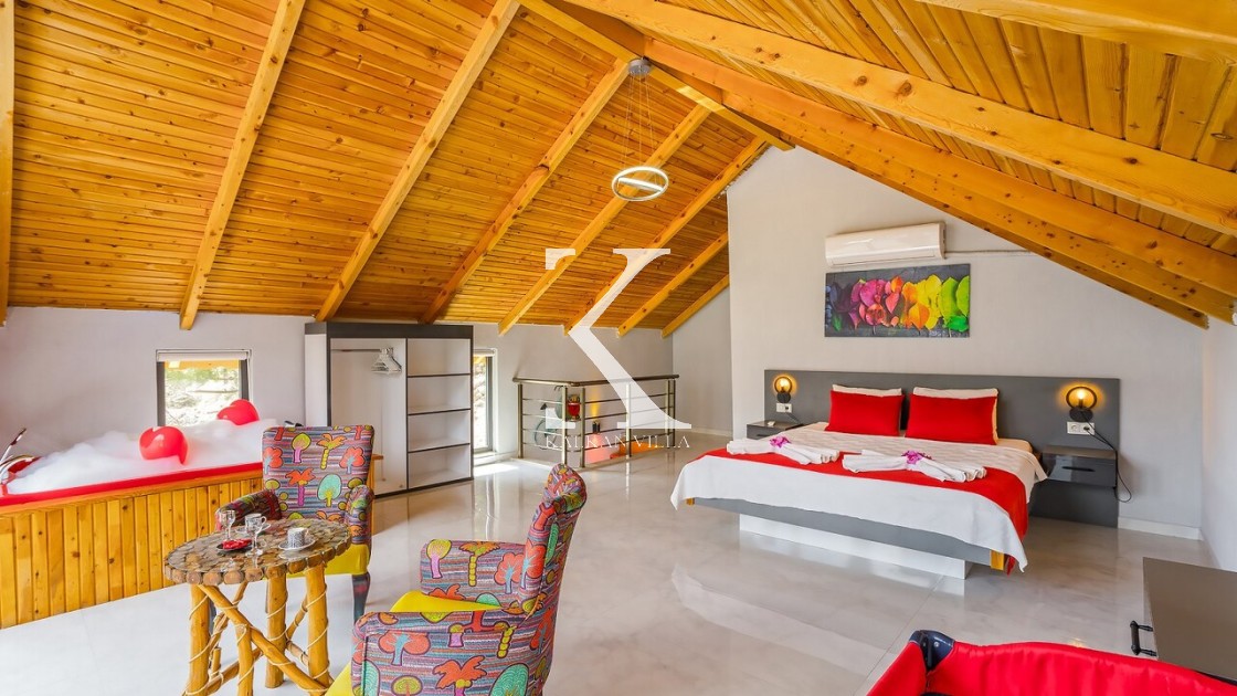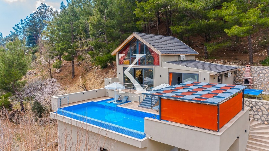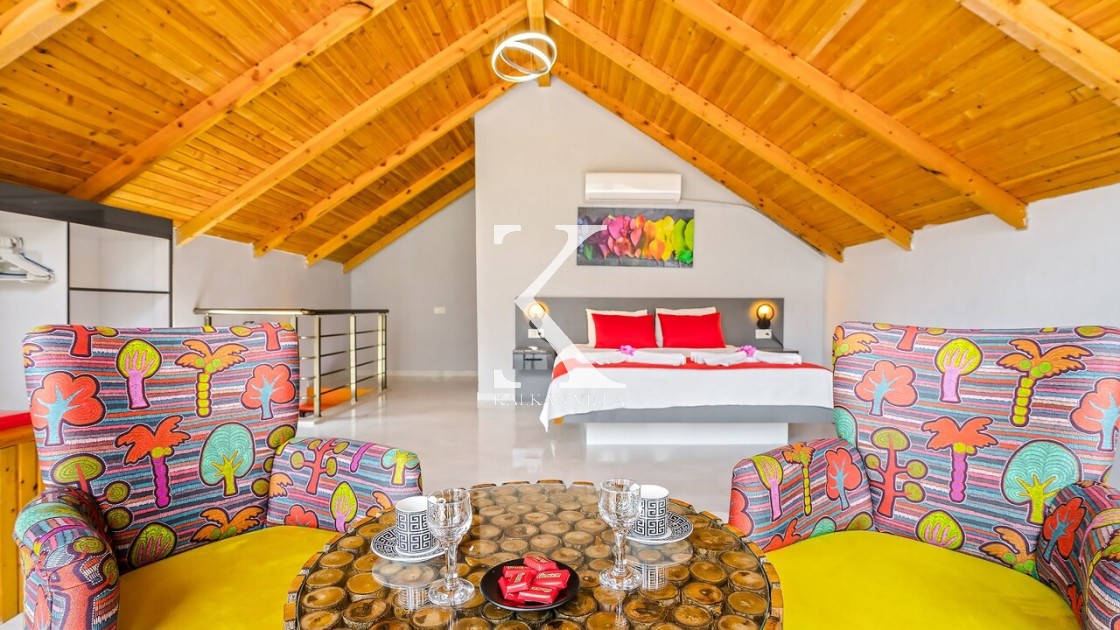 Tamamen korunaklı havuz terası sayesinde dışarıdan görünmeyen bu özel villa, balayı çiftleri ve çekirdek aileler için huzurlu bir tatil fırsatı sunar.