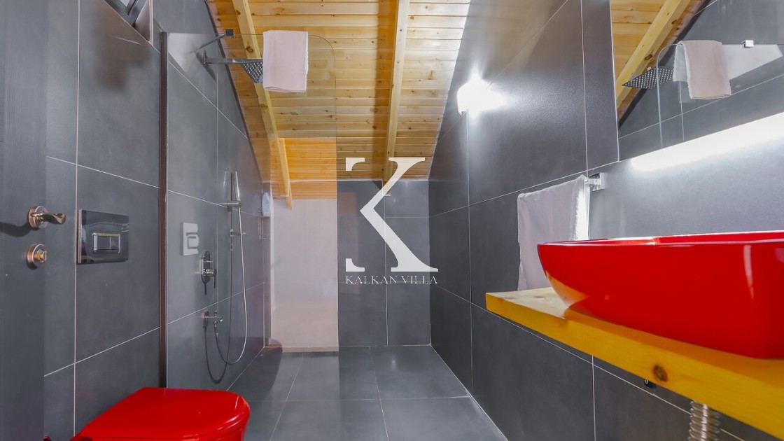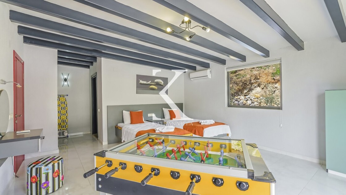 Geniş yüzme havuzu, şezlonglar, masa tenisi, langırt ve keyifli vakit geçirebileceğiniz ferah bahçe alanı ile donatılmıştır. Yatak odalarından birinde yer alan jakuzi, konfor ve romantizm arayan misafirler için ekstra ayrıcalık sağlar. Villanın içi modern ve konforlu bir şekilde döşenmiştir.